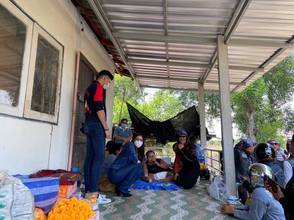 โดยมีกำนันตำบลปลายกัดเป็นผู้รับมอบ คือกำนัน สินิรัชต์ โพธิ์พิทัก นำไปแจกในพื้นที่ทุกครัวเรือน จำนวน1,500 ครัวเรือน เพื่อนำไปใช้ในการดำรงชีวิตประจำวันจากนั้น คุณชณทัต ปัทะมะภูวดล และกลุ่ม Crazy Ghost (กลุ่มรถฮาร์เลย์) ได้เข้าเยี่ยมคนพิการ และ คนชรา ในพื้นที่