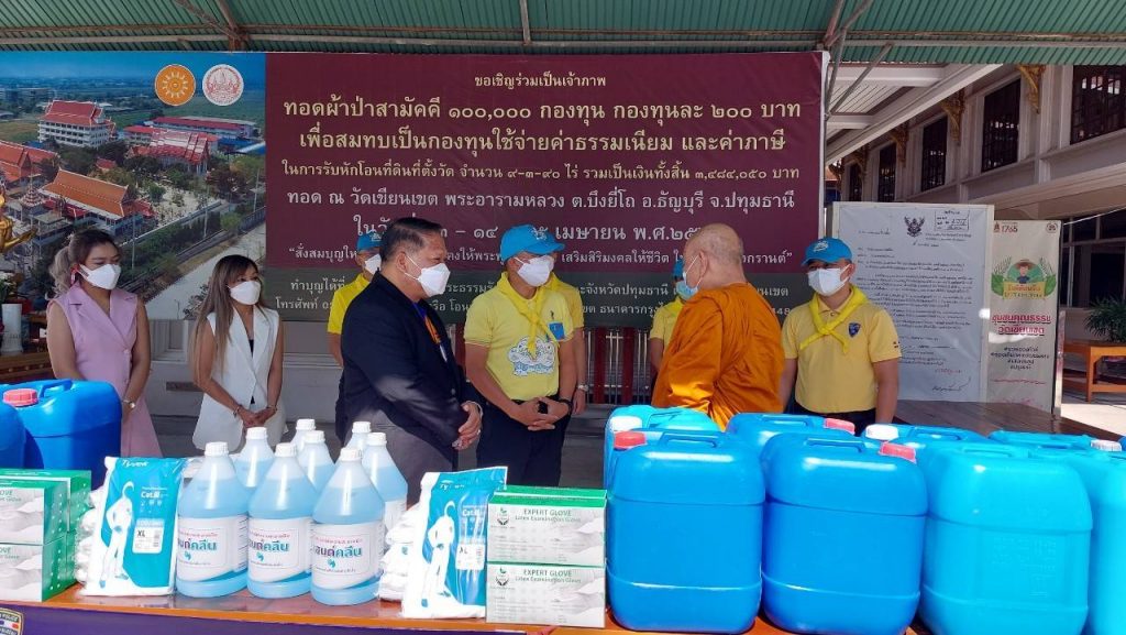“ผบก.ตม.3 – ผกก.ตม.จว.ปทุมธานี นำข้าราชการตำรวจ ร่วมทำบุญถวายน้ำมันเผาศพโควิด และอุปกรณ์ป้องกัน ณ วัดเขียนเขต ปทุมธานี”