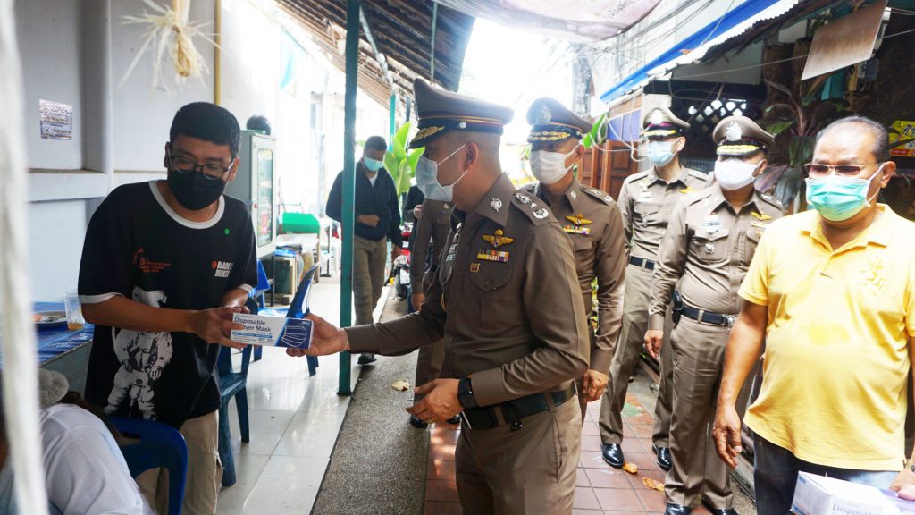 ทั้งนี้ พล.ต.ท.สุรเชษฐ์ หักพาล ยังได้มอบหน้ากากอนามัยผ้ามัสลิน จำนวน 300 ชิ้น และ น้ำยาฆ่าเชื้อแบคทีเรีย จำนวน 20 ลิตร แก่ข้าราชการตำรวจ สน.ภาษีเจริญ และพี่น้องประชาชนในพื้นที่เพื่อใช้ในการป้องกันโรค COVID – 19