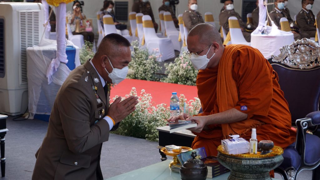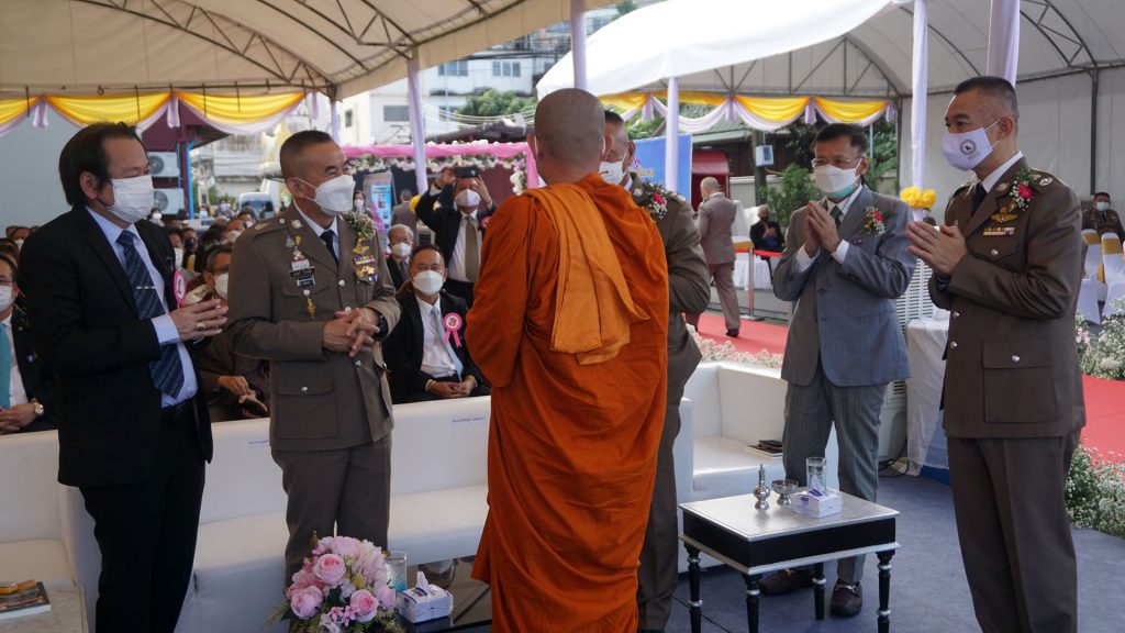 23 ก.ย. 64 เวลา 06.50 น. พล.ต.ท.ภัคพงศ์ พงษ์เภตรา ผบช.น. ประธานในพิธี พร้อมด้วย พล.ต.ต.โชคชัย งามวงศ์ ผบก.น.8 ร่วมในพิธีทำบุญเสริมสิริมงคล กองบังคับการตำรวจนครบาล 8 ประธานจุดธูปเทียนบูชาพระรัตนตรัย พระสงฆ์ วัดพิชยญาติการามวรวิหาร 9 รูป เจริญพระพุทธมนต์ ประธานสงฆ์ เจิมเสาธงชาติ จากนั้น วงปี่สก๊อตนำขบวนเชิญธงชาติไปยังหน้าเสาธง เชิญธงชาติ ขึ้นสู่ยอดเสาและมอบโล่เกียรติคุณให้แก่ อดีต ผบก.น.8,ประธาน อนุ กต.ตร.,คณะอนุ กต.ตร.และประธาน กต.ตร.สน. พร้อมกันถ่ายภาพร่วมกัน ณ กองบังคับการตำรวจนครบาล 8