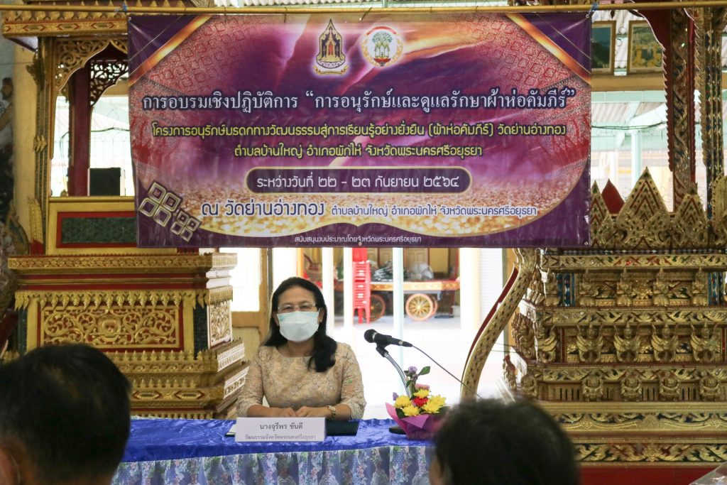 ภายใต้โครงการการอนุรักษ์มรดกทางวัฒนธรรมสู่การเรียนรู้อย่างยั่งยืน (ผ้าห่อคัมภีร์) วัดย่านอ่างทอง ตำบลบ้านใหญ่ อำเภอผักไห่ จังหวัดพระนครศรีอยุธยา ระหว่างวันที่ 22 – 23 กันยายน 2564 ณ วัดย่านอ่างทอง ตำบลบ้านใหญ่ อำเภอผักไห่ จังหวัดพระนครศรีอยุธยา
