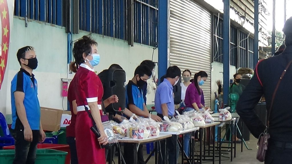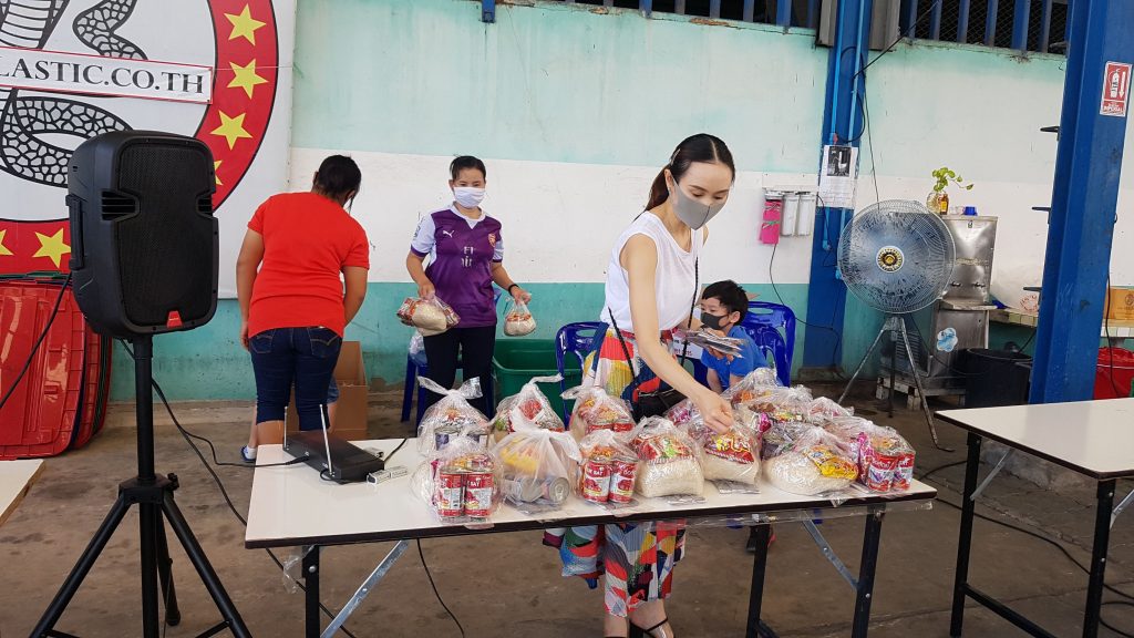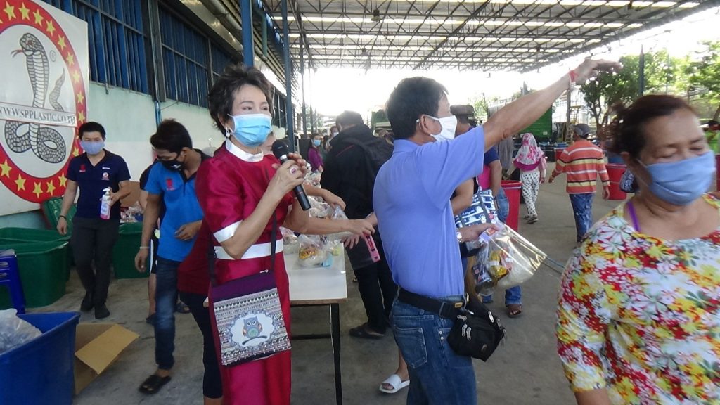 คุณจิรนิษฐ์ เจ้าของกิจการโรงงานพลาสติก เเปลรูป ซึ่งตั้งอยู่เลขที่ 39 ซอยประชาอุทิศ 75 แขวงทุ่งครุ เขตทุ่งครุ จังหวัดกรุงเทพมหานคร ซึ่งวันนี้พร้อมครอบครัว และพนักงาน จัดกิจกรรมแจกข้าวสารอาหารแห้งจำนวน 50 ชุด เพื่อเป็นขวัญและกำลังใจให้กับพี่น้องประชาชนชาวเขตทุ่งครุ โดยในกิจกรรมครั้งนี้ ได้รับการสนับสนุนจากภาครัฐจากสำนักงานเขตทุ่งครุ จัดเจ้าหน้าที่เทศกิจ แล้ว สน.ทุ่งครุ จัดกำลังเจ้าหน้าที่มาช่วยดูแลความเรียบร้อยให้กับพี่น้องประชาชน เข้าแถวเว้นระยะห่างกันอย่างเป็นระเบียบ เพื่อป้องกันการแพร่เชื้อ