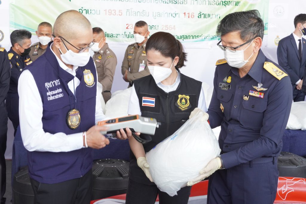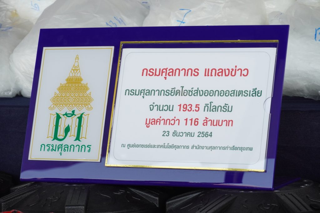 The Customs Department of Thailand, together with Office of the Narcotics Control Board (ONCB), Royal Thai Police, and Armed Forces Security Center have seized 193.5 kilograms of methamphetamine in crystal form (ice) worth 1.16 billion THB approximately, in the destination market.
