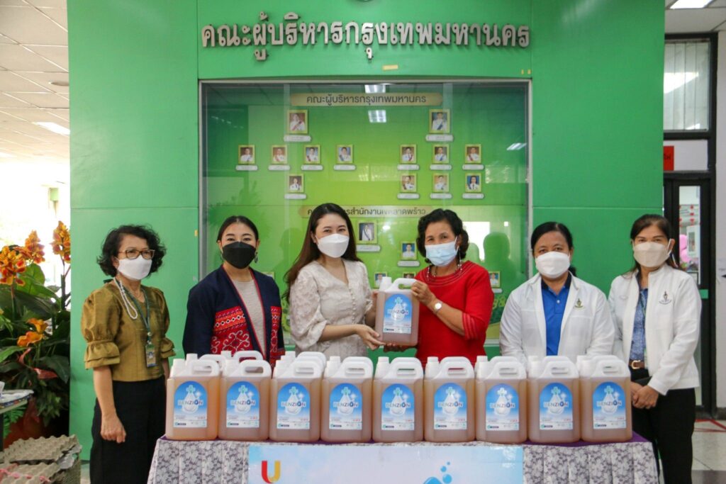 เมื่อวันที่ 11 ก.พ.65 เวลา 11:00 น. ที่สำนักงานเขตลาดพร้าว นางสุภาพร ศรีศาสนวงศ์ ผู้อำนวยการเขตลาดพร้าว รับมอบน้ำยาฆ่าเชื้อ เบนไซออน(Benzion) จาก คุณกนกอร ลีนุรัตน์ ผู้บริหารบจก.ยูนิซิล กรุ๊ปโดยมี (น.สพ. ธนากร ตั้งเมธากุล ผู้บริหาร) พร้อมด้วย คุณสิรัชชา รัตนาปริญญาโชค กรรมการผู้จัดการ(SRCRGROUP) คุณกนกอร กล่าวว่า ตามที่ได้เกิดสถานการณ์การแพร่ระบาดของโรคติดเชื้อไวรัสโคโรนา 2019 (โควิด-19) ส่งผลให้ประชาชนได้รับความเดือดร้อนจากผลกระทบของการแพร่ระบาดเป็นจำนวนมาก บริษัท ตระหนักถึงปัญหาของสถานการณ์ดังกล่าว จึงขอมอบน้ำยาฆ่าเชื้อโรค เบนไซออน(Benzion) 100ลิตร มูลค่า 59,900 บาท ซึ่งมีคุณสมบัติในการฆ่าเชื้อแบคทีเรียและไวรัส เพื่อช่วยลดความเสี่ยงในการปนเปื้อนของเชื้อโรคต่างๆให้กับสำนักงานเขตลาดพร้าวเป็นหน่วยงานหลักในการขับเคลื่อนภารกิจการบริหารสถานการณ์การแพร่ระบาดของโรคติดเชื้อไวรัสโคโรนา 2019 (โควิด-19) และเป็นการสนับสนุนภารกิจของสำนักงานศูนย์บริหารสถานการณ์การแพร่ระบาดของโรคติดเชื้อไวรัสโคโรนา 2019 สำนักงานเขตลาดพร้าว เพื่อใช้สำหรับป้องกันและควบคุมการแพร่ระบาดของโรคติดเชื้อไวรัสโคโรนา 2019ต่อไป