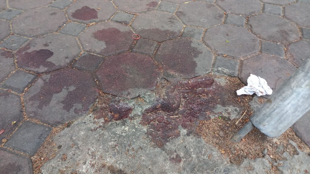 ที่เกิดเหตุพบโต๊ะเก้าอี้ล้ม คราบเลือดกระจายเกลื่อน พลเมืองดีช่วยกันจับกุมตัวมือมีดไว้ได้ทราบชื่อนายไพฑูรย์ พุฒิศรี อายุ 43 ปี เจ้าหน้าที่ฝ่ายสิ่งแวดล้อม สำนักงานเขตสาทร ในสภาพมึนเมา พร้อมของกลางมีดพกเปื้อนเลือด 1 เล่ม นำตัวไปควบคุมที่ห้องขัง สน.วัดพระยาไกร รอการสอบสวนหลังจากหายเมา ส่วนคนตายทราบชื่อคือนายจักรกฤช หมายหาทรัพย์ อายุ 31 ปี พนักงานปั๊มน้ำมันพีที สภาพศพถูกแทงด้วยอาวุธมีดเข้าบริเวณใต้ราวนมด้านซ้ายตัดขั้วหัวใจ และหน้าอกด้านขวา เจ้าหน้าที่มูลนิธิป่อเต็กตึ๊งนำส่งนิติเวช โรงพยาบาลจุฬาฯเพื่อผ่าพิสูจน์อย่างละเอียดต่อไป