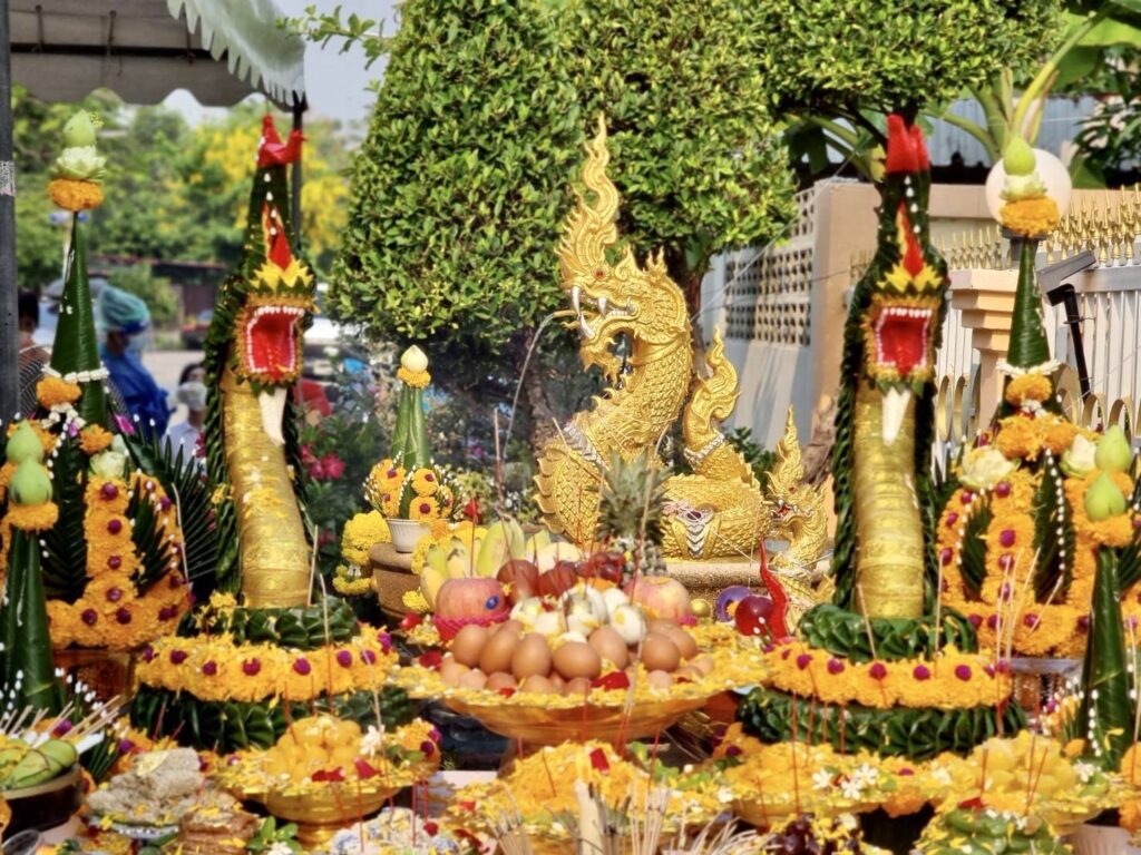เมื่อวันที่ 9 เมษายน 2565 เวลา 9.00 น.ตั๊ก อัยรินทร์ พันธุ์ฤทธิ์ ผู้ประกาศข่าวและพิธีกร ถือฤกษ์งามยามดีรับสงกรานต์ ปี2565 จัดพิธีบวงสรวงพญาศรีสุวรรณนาคราช และทำบุญบ้านประจำปี โดยช่วงเช้ามีพิธีบวงสรวงพญานาคจากอาจารย์ศุภณัฐ เมืองคำ ๘๕ โหราพยากรณ์ และเจริญพระพุทธมนต์ถวายภัตตาหารเพลพระ 9 รูป โดยนิมนต์พระครูโสภณภัทรเวทย์,ดร.(อาจารย์อ๊อด ปธานิโก) วัดสายไหม ต.คูคต อ.ลำลูกกา จ.ปทุมธานี มาสวดทำพิธีเพื่อความเป็นสิริมงคล ได้รับเกียรติจากแขกผู้ใหญ่ ส.ส.ไชยา พรหมา,ส.ส.นิคม บุญวิเศษ,ส.ส.ชัยยันต์ ผลสุวรรณ์,ส.ส.ศุภชัย นพขำ,ส.ส.เอกชัย ทรงอำนาจเจริญ นายแพทย์ทศพร เสรีรักษ์,ดร.อ็อด โพธิ์เงิน,นายสมบัติ ผลกิจ,นายรชตะ ด่านกุล,นายอำนาจ เชาวรัตน์, นายเสนีย์ มูลขำ,นายทนงศักดิ์ ปิ่นถาวร,นางพรรณไพลิน ผลสุวรรณ์, ทีมนายกเทศบาลเมืองลำสามแก้ว และคนสนิทมาร่วมงาน
