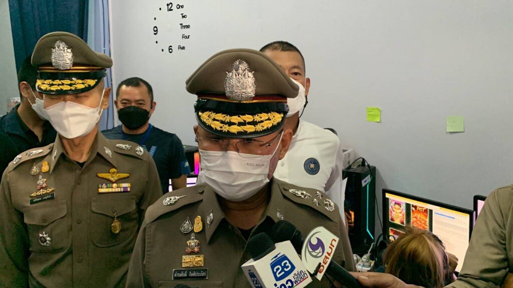 วันนี้ (31 พ.ค. 65) เวลา 13.00 น. พล.ต.อ.ดำรงศักดิ์ กิตติประภัสร์ รอง ผบ.ตร. ผู้อำนวยการศูนย์ปราบปรามอาชญากรรมทางเทคโนโลยีสารสนเทศ (ศปอส.ตร.) หรือ PCT: Police Cyber Taskforce พล.ต.ต.นภันต์วุฒิ เลี่ยมสงวน ผบก.สส.ภ.8 หัวหน้าชุดปฏิบัติการที่ 3 PCT แถลงผลการจับกุมเครือข่ายเว็บไซต์พนันออนไลน์ Ds7gaming. com จับกุมผู้ต้องหา 5 ราย พร้อมของกลางจำนวนมาก
