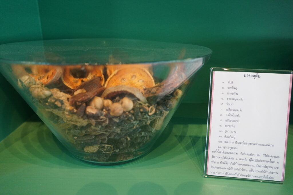 นอกจากนี้นี้ยังมีนิทรรศการประวัติการแพทย์แผนไทย รวมทั้งจัดแสดงตำรับยาต้ม 9 หม้อ ที่เคยใช้ในโรงศิริราชพยาบาล (หรือโรงพยาบาลศิริราชในปัจจุบัน) สำหรับการบำบัดความป่วยไข้ต่าง ๆ ของประชาชนอย่างครอบคลุมตั้งแต่เมื่อเริ่มก่อตั้งในปีพ.ศ. 2431 แต่ภายหลังนั้นตำรับยาได้สาบสูญไป มีสวนสมุนไพรกว่า 300 ชนิด สำหรับเป็นศูนย์การศึกษาและเรียนรู้ทางด้านแพทย์แผนไทยและยาไทยสำหรับประชาชนเพื่อการศึกษาและการพึ่งพาตนเอง รวมทั้งเป็นที่ตั้งของสหคลินิคศูนย์การแพทย์แผนไทยพัฒนา รับตรวจรักษาโรคทั่วไปโดยแพทย์แผนปัจจุบัน และแพทย์แผนไทย เน้นการจ่ายยาสมุนไพรตามทฤษฎีแพทย์แผนไทยเป็นหลัก และสถาบันแพทย์แผนไทยพัฒนา ซึ่งเป็นสถาบันที่ทำหน้าที่ในการพัฒนาองค์ความรู้ทางด้านการแพทย์แผนไทยรวมทั้งการวิจัยพัฒนายาไทยเพื่อได้รับการวิจัยทดลองทางวิทยาศาสตร์ เพื่อสร้างความยอมรับและถูกนำมาใช้ในวงกว้างในการรักษาโรคและส่งเสริมสุขภาพของคนไทยและผู้คนทั่วโลก