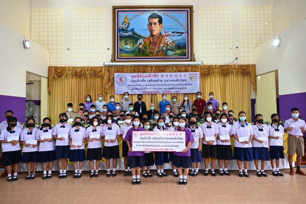 โดยในวันนี้ (วันที่ 8 มิถุนายน 2565 เวลา 10.30 น.) นายนิพนธ์ ลีละศิธร กรรมการมูลนิธิฯ เป็นประธานในพิธีมอบทุนการศึกษาแก่เยาวชนในพื้นที่จังหวัดแม่ฮ่องสอน จำนวน 8 สถาบัน ประกอบด้วย โรงเรียนราชประชานุเคราะห์ 21 โรงเรียนเพียงหลวง 11 โรงเรียนบ้านแพะวิทยา โรงเรียนบ้านห้วยโผ โรงเรียนบ้านห้วยสิงห์ โรงเรียนไทยรัฐวิทยา 33 โรงเรียนสบเมยวิทยาคม และวิทยาลัยการอาชีพแม่สะเรียง รวม 61 ทุน รวมมอบทุนการศึกษา เป็นเงิน 385,000 บาท (สามแสนแปดหมื่นห้าบาทถ้วน) พร้อมมอบสิ่งของ และอาหารกลางวัน (ข้าวกล่อง) และน้ำดื่ม แก่เยาวชน และคณาจารย์จากสถาบันการศึกษาแต่ละแห่งที่เป็นตัวแทนรับมอบ ณ โรงเรียนราชประชานุเคราะห์ 21 อำเภอแม่ลาน้อย จังหวัดแม่ฮ่องสอน