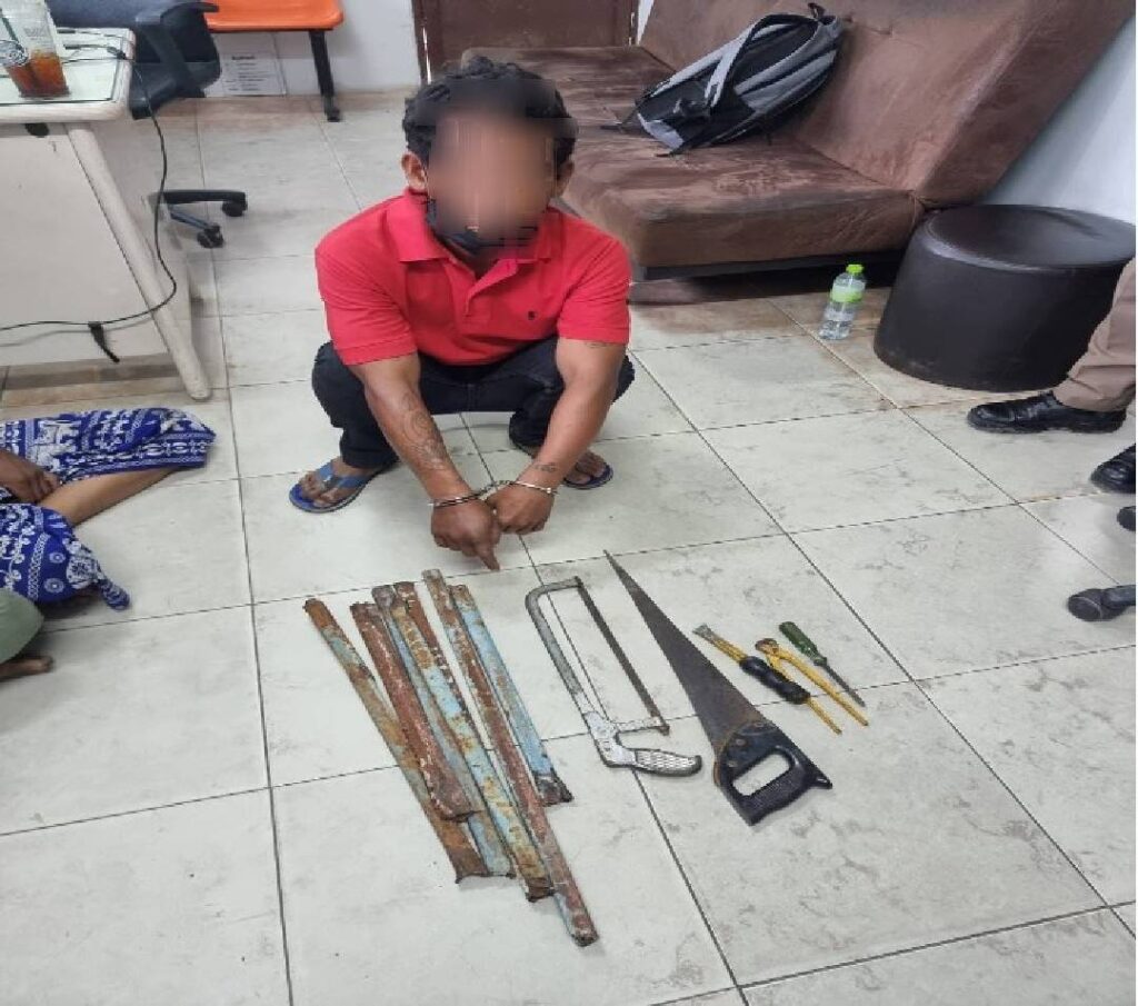 2. นายนก อายุ 41 ปี ชาวอำเภอบางปะอิน จว.พระนครศรีอยุธยา พร้อมด้วยของกลาง เหล็กกล่อง ขนาด 1 นิ้ว จำนวน 7 ชิ้น , เลื่อยสำหรับตัดเหล็ก จำนวน 1 อัน , สกัด จำนวน 1 อัน , คีม จำนวน 1 อัน , เลื่อยสำหรับเลื่อยไม้ จำนวน 1 อัน และพบรถจักรยานยนต์ ยี่ห้อสกุ๊ปปี้ สีส้ม ไม่ติดแผ่นป้ายทะเบียน จำนวน 1 คัน ในความผิดฐาน “ลักทรัพย์ในเคหะสถาน หรือรับของโจร และเสพยาเสพติดให้โทษประเภท 1 (เมทแอมเฟตามีนหรือยาบ้า) โดยฝ่าฝืนต่อกฎหมาย ”