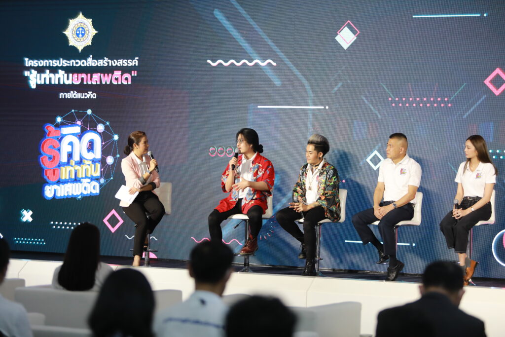 วันที่ 10 ตุลาคม 2565 เมื่อเวลา 10.00 น. นางพงษ์สวาท กายอรุณสุทธิ์ ปลัดกระทรวงยุติธรรม เป็นประธานแถลงข่าว การประกวดสื่อสร้างสรรค์รู้เท่าทันยาเสพติด ภายใต้แนวคิด “ รู้คิด รู้เท่าทันยาเสพติด” ที่สำนักงาน ป.ป.ส. โดยมี นายวิชัย ไชยมงคล เลขาธิการ ป.ป.ส. ผู้บริหารกระทรวง ศิลปิน/อินฟลูเอนเซอร์ เก่ง ธชย ประทุมวรรณ ,พรอยมน มนสภรณ์ ชาญเฉลิม , สก๊อต ธธรรศ ประทุมวรรณ และ ครูทอม คำไทย เข้าร่วม