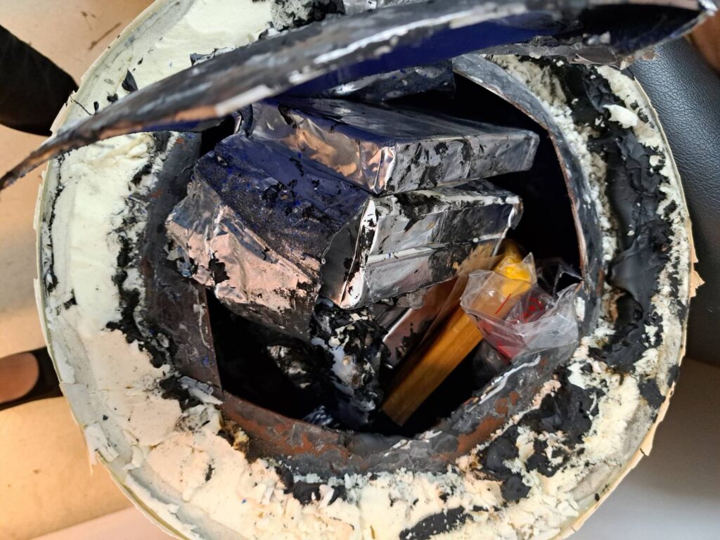 จนกระทั่งเมื่อวันที่ 12 ตุลาคม 2565 เจ้าหน้าที่กรมศุลกากร ตรวจพบพัสดุไปรษณีย์ต้องสงสัย เมื่อเปิดตรวจพบเครื่องทำน้ำอุ่น จำนวน 1 เครื่อง และทุเรียนอบแห้ง จำนวน 4 ลัง ต้นทางจากประเทศกัมพูชา ผ่านประเทศไทย ปลายทางไต้หวัน ทางท่าอากาศยานสุวรรณภูมิ ดังนั้น ชุดปฏิบัติการ Airport Interdiction Task Force (AITF) ประกอบด้วย กรมศุลกากร สำนักงาน ป.ป.ส. กองบัญชาการตำรวจปราบปรามยาเสพติด และศูนย์รักษาความปลอดภัย กองบัญชาการกองทัพไทย ร่วมกันตรวจสอบ พบเฮโรอีนอัดแท่ง ตราสัญลักษณ์สิงโตเหยียบลูก จำนวน 10 แท่ง น้ำหนักประมาณ 3,700 กรัม ซุกซ่อนอยู่ในเครื่องทำน้ำอุ่น ดัดแปลงขึ้นใหม่จำนวน 1 เครื่อง และพบเฮโรอีนบรรจุอยู่ภายในซองกันชื้น น้ำหนักประมาณ 3,510 กรัม ซุกซ่อนอยู่ใน