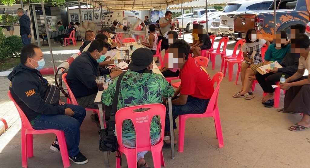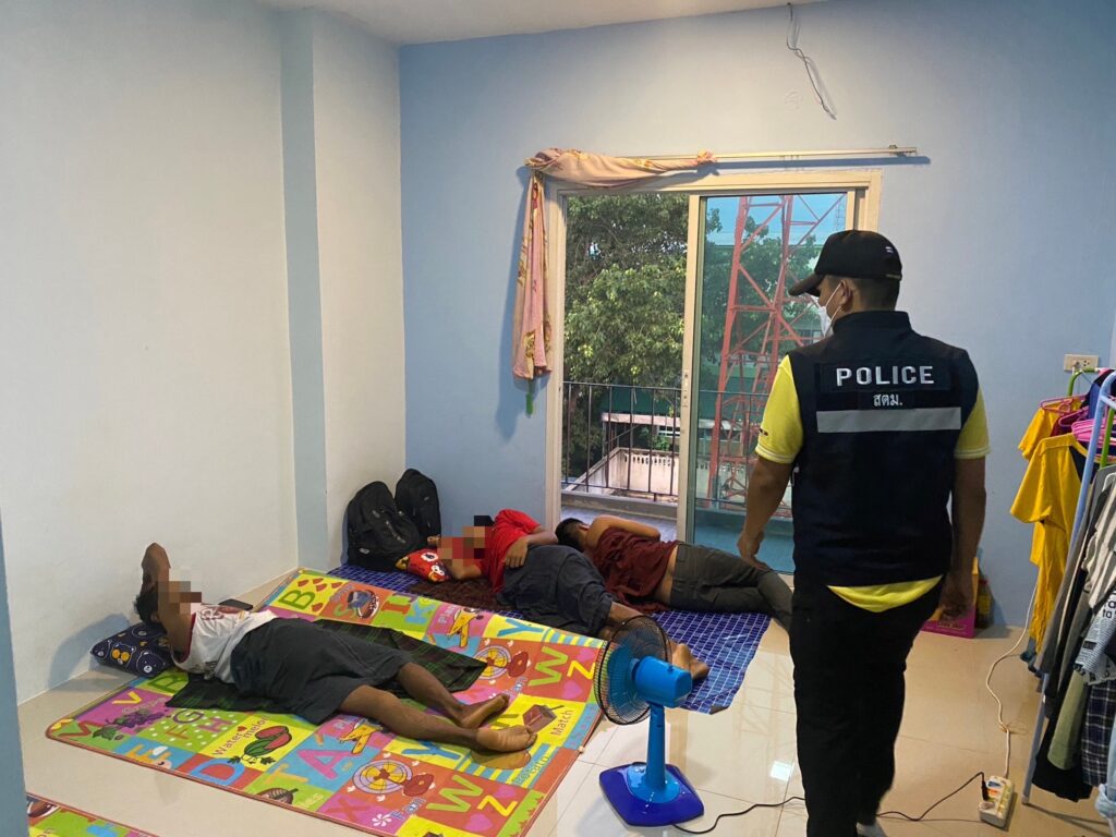 วันนี้ 1 มิ.ย. 2566 เวลา.09.19 น. พ.ต.อ.เจริญพงษ์ ขันติโล ผกก.ตม.จว.ปทุมธานี เเถลงข่าวการจับกุมต่างชาติ โดยได้นำกำลังชุดสืบสวนปราบเข้าจับกุมต่างชาติตามนโยบายของ พล.ต.ท.ภาคภูมิภิภัทฒ์ สัจจพันธุ์ ผบช.สตม.,พล.ต.ต.วริศร์สิริ ลีละสิริ บก.ตม.3 สั่งการให้ พ.ต.อ.เจริญพงษ์ ขันติโล ผกก.ตม.จว.ปทุมธานี และ พ.ต.อ.จิรพงศ์ รุจิรดำรงค์ชัย ผกก.สส.บก.ตม.3 พร้อมด้วยข้าราชการตำรวจในสังกัด เพิ่มความเข้มข้นในการตรวจสอบคนต่างด้าวที่การอนุญาตสิ้นสุด (OVERSTAY) และ X-ray จุดพักแรงงานต่างด้าวที่เข้ามาผิดกฎหมายหลบซ่อนตัว โดยตรวจสอบอาคารพาณิชย์ แห่งหนึ่ง หมู่ 3 ต.ระแหง อ.ลาดหลุมแก้ว จว.ปทุมธานี ถูกนำมาใช้เป็นแหล่งพักให้แรงงานต่างด้าวหลบซ่อนตัวหลายคน เมื่อเจ้าหน้าที่ได้ตรวจสอบพบ นาย AENT (นามสมมติ) อายุ 31 ปี สัญชาติเมียนมา รับว่าตนเป็นนายหน้าผู้ดูแลแรงงานต่างด้าว ซึ่งติดต่อกับนายหน้าฝั่งประเทศต้นทางผ่าน Facebook เพื่อจัดหาคนที่ต้องการลักลอบเข้ามาทำงานในประเทศไทย จึงถูกจับกุมใน ข้อหา “ให้การช่วยเหลือ ซ่อนเร้น หรือช่วยด้วยประการใดๆ ให้คนต่างด้าวที่เข้าเมืองผิดกฎหมายพ้นจากการจับกุม” พร้อมด้วยแรงงานต่างด้าวร่วมชาติ จำนวน 7 คน ในข้อหา “เข้ามาและอยู่ในราชอาณาจักรโดยไม่ได้รับอนุญาตหรือการอนุญาตสิ้นสุด” โดยทั้งหมดรับว่าเดินทางเข้ามาประเทศไทยเพื่อหางานทำ ผ่านนายหน้าที่ประเทศต้นทางประสานกับนายหน้าในเมืองไทย ร่วมกันช่วยลักลอบนำแรงงานเข้ามาในประเทศ จากนั้นพักคอยบ้านของนายหน้า เพื่อรอเดินทางไปหางานทำ แต่ถูกเจ้าหน้าที่เข้าจับกุมได้ก่อน