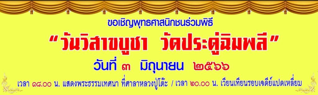 วันวิสาขบูชา ๓ มิถุนายน ๒๕๖๖ (ขึ้น ๑๕ ค่ำ เดือน ๗) วัดประดู่ฉิมพลี กทม. พุทธศาสนิกชน ร่วมกิจกรรมวันวิสาขบูชา