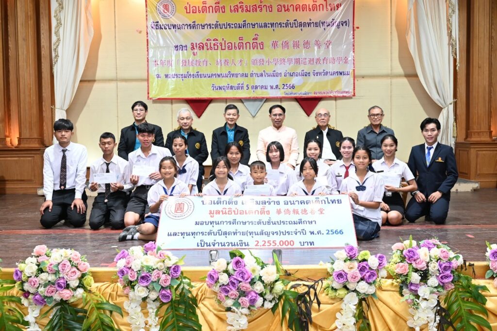 วันนี้ (วันพฤหัสบดีที่ 5 ตุลาคม 2566) มูลนิธิป่อเต็กตึ๊ง นำโดย นายวิรุฬ เตชะไพบูลย์ ที่ปรึกษาประธานกรรมการมูลนิธิป่อเต็กตึ๊ง พร้อมด้วย นายวิชิต ชินวงศ์วรกุล รองประธานกรรมการมูลนิธิป่อเต็กตึ๊ง นายนิพนธ์ ลีละศิธร กรรมการ และนายบวรสินธุ์ ตันธุวนิตย์ กรรมการ ลงพื้นที่มอบทุนการศึกษาระดับชั้นประถมศึกษา และทุนทุกระดับปีสุดท้าย (ทุนสัญจร) ประจำปี พ.ศ. 2566 แก่นักเรียน นิสิต นักศึกษา ที่ประพฤติดีแต่ขาดแคลนทุนทรัพย์จังหวัดนครพนม สกลนคร มุกดาหาร บึงกาฬ โดยมีจังหวัดนครพนมเป็นศูนย์กลางในการมอบทุนฯ รวม 53 สถาบัน 265 ทุน รวมเป็นเงินจำนวน 2,255,000 บาท (สองล้านสองแสนห้าหมื่นห้าพันบาทถ้วน) เพื่อสนับสนุนให้เยาวชนได้รับโอกาสทางการศึกษาอย่างเท่าเทียมตามที่มุ่งหวัง เติบโตพร้อมมีวิชาความรู้ สร้างอนาคตของตนเองและครอบครัว เป็นคนดีของสังคมและประเทศชาติ อีกทั้งยังเป็นการช่วยเหลือแบ่งเบาภาระของผู้ปกครอง โดยมีนายวันชัย จันทร์พร ผู้ว่าราชการจังหวัดนครพนม เป็นประธานในพิธี พร้อมด้วย นางศิริพร กระจ่างหล้า ผู้จัดการฝ่ายสังคมสงเคราะห์ และนางสาวศุภรัตน์ สมบัติเจริญไทย หัวหน้าแผนกส่งเสริมการศึกษาและอาชีพ นำทีมแผนกส่งเสริมการศึกษาและอาชีพ ฝ่ายสังคมสงเคราะห์ มูลนิธิป่อเต็กตึ๊ง ร่วมในพิธี และคณะนายกสมาคมพ่อค้าจังหวัดนครพนม เป็นผู้ประสานงานและร่วมในพิธี ณ หอประชุมโรงเรียนนครพนมวิทยาคม อำเภอเมือง จังหวัดนครพนม