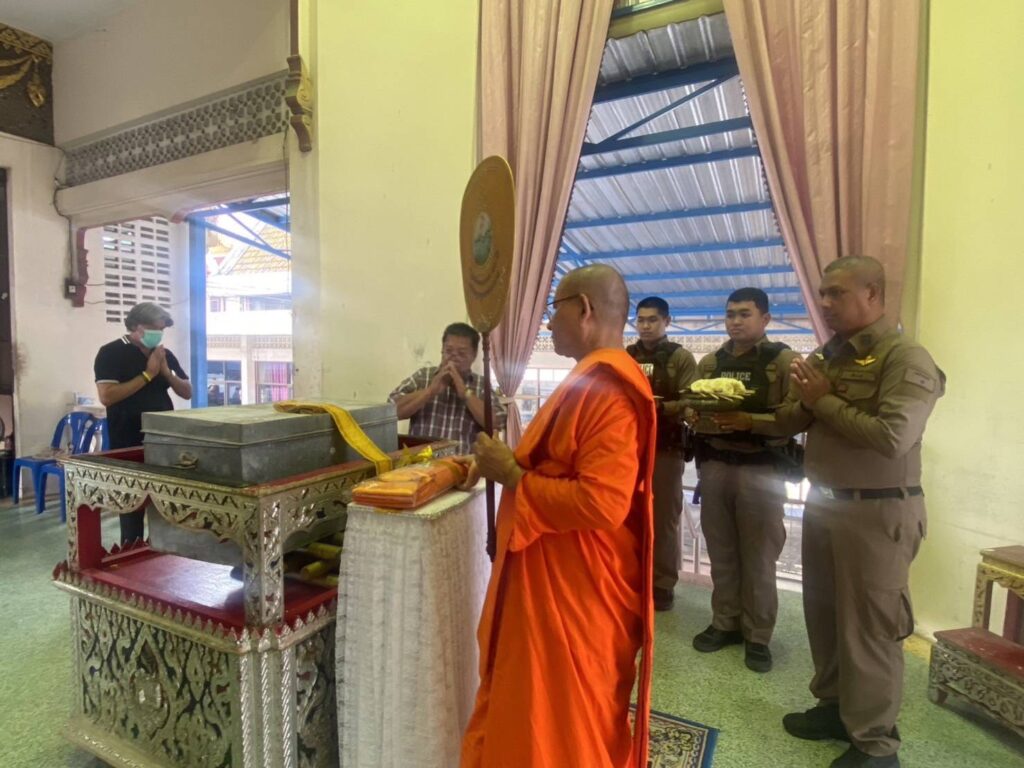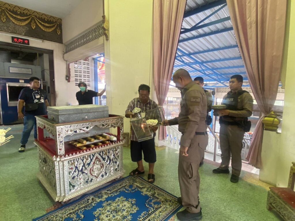 และเนื่องจาก พ.ต.อ.ดร.ปราโมทย์ จันทร์บุญแก้ว ผกก.สน.เพชรเกษม ได้มีการปรับปรุงห้องร้างดังกล่าวเป็นศูนย์ควบคุมสั่งการ (CCOC) และจะเปิดทำการในวันที่ 17 ตุลาคม 2566 ซึ่งตรงกับวันตำรวจ จึงได้ ร่วมกันกับข้าราชการตำรวจทุกนายในโรงพัก นิมนต์พระสงฆ์มาสวดมนต์บริเวณห้องขั้น 4 และเคลื่อนย้ายหีบเหล็กไปทำพิธีฌาปณกิจ พร้อมทั้งสวดบังสุกุลเพื่อทำบุญให้กับผู้เสียชีวิต ที่ เมรุวัดม่วง โดยมีพระพิพัฒน์ศาสนธำรง เจ้าอาวาสวัดม่วงเป็นประธานฝ่ายสงฆ์ ทั้งนี้เพื่อเป็นการอุทิศส่วนกุศลให้กับผู้ตาย โดยได้ขออนุมัติทำลายของกลางจากผู้บังคับบัญชาถูกต้องตามขั้นตอน หลังจากที่ศาลมีคำสั่งริบ โดยหลังจากนี้ จะรายงานผล การดำเนินงานทั้งหมดให้ผู้บังคับบัญชาทราบตามลำดับชั้นต่อไป.