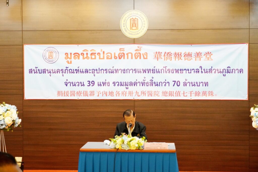 มูลนิธิป่อเต็กติ๊ง “ช่วยชีวิต รักษาชีวิต สร้างชีวิต” จัดงบ 70 ล้านบาท มอบครุภัณฑ์ทางการแพทย์แก่โรงพยาบาลในส่วนภูมิภาค รวม 39 แห่ง