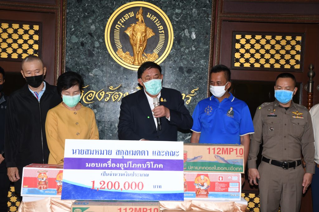 เมื่อเวลา 13.30 น.วันที่ 13 พ.ค.63 ที่ห้องรัตนโกสินทร์ ศาลาว่าการกรุงเทพมหานครนายสมหมาย สกุลเมตตา โปรโมเตอร์มวยไทยชื่อดัง และประธานกลุ่มพลังใหม่ พร้อมด้วยทีมงานได้นำสิ่งของเครื่องใช้ที่จำเป็นสำหรับยังชีพ เช่น ข้าวสาร บะหมี่กึ่งสำเร็จรูป น้ำมันพืช ปลากระป๋อง น้ำปลา จำนวน 7 คันรถบรรทุก รวมมูลค่า 1,200,000 มอบให้กับ พล.ต.อ.อัศวิน ขวัญเมือง ผู้ว่าราชการกรุงเทพมหานคร เพื่อร่วมกับทางหน่วยงานของ กทม.นำสิ่งของไปแจกจ่ายให้กับประชาชนที่ได้รับความเดือดร้อนตามชุมชนต่างๆในเขตกรุงเทพมหานคร