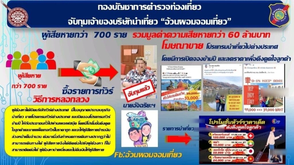 กลุ่มนักท่องเที่ยวร้องเรียน บริษัทอ้วนผอมอะราวเดอะเวิลด์ มีพฤติการณ์โพสต์ขายโปรแกรมนำเที่ยวผ่านเพจเฟสบุ๊ค มีผู้เสียหายมากกว่า 700 ราย มูลค่าความเสียหายประมาณ 60 ล้านบาท
