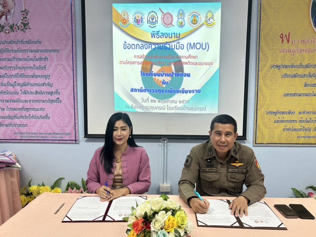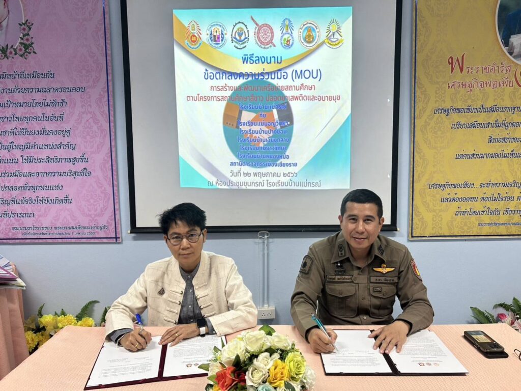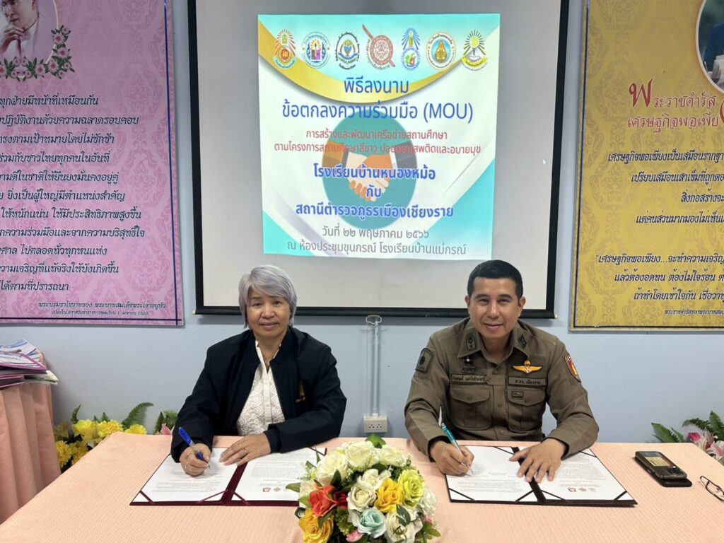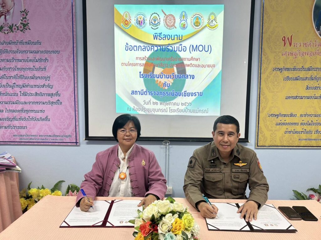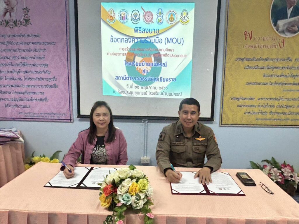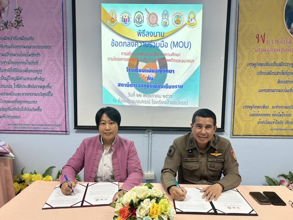 พ.ต.ท.ฉันทฤทธิ์ เหล่าไพโรจน์จารี รอง.ผกก.ป.สภ.เมืองเชียงราย เข้าลงนาม MOU การสร้างและพัฒนาเครือข่ายสถานศึกษา ตามโครงการสถานศึกษาสีขาวปลอดยาเสพติด และอบายมุข