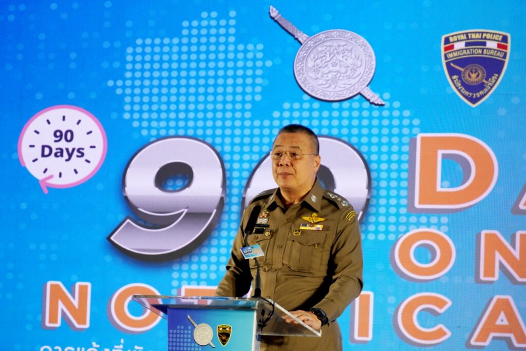 พล.ต.ท.อิทธิพล อิทธิสารรณชัย ผบช.สตม.แถลงเปิดตัวโครงการแจ้งที่พักอาศัยเมื่ออยู่ในราชอาณาจักรเกิน 90 วัน ออนไลน์