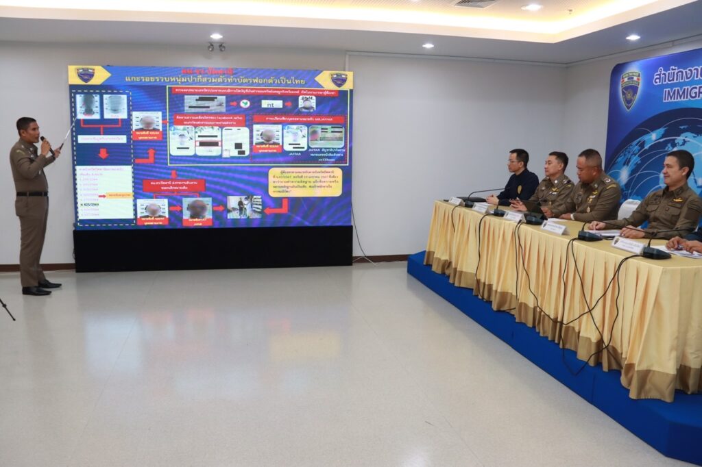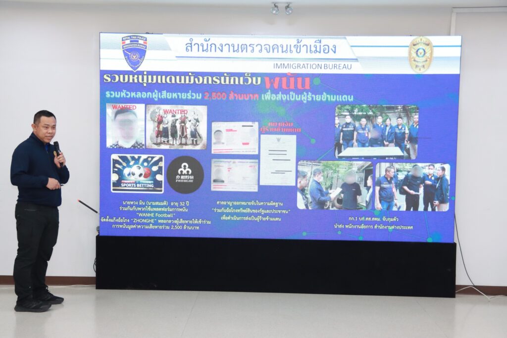 พล.ต.ต.พันธนะ นุชนารถ รอง ผบช.สตม.แถลงผลจับกุม หนุ่มแดนมังกรนักเว็บพนันรวมหัวหลอกผู้เสียหายกว่า 2,500 ล้านบาท และรวบหนุ่มปากีสวมตัวทำบัตรฟอกตัวเป็นไทย