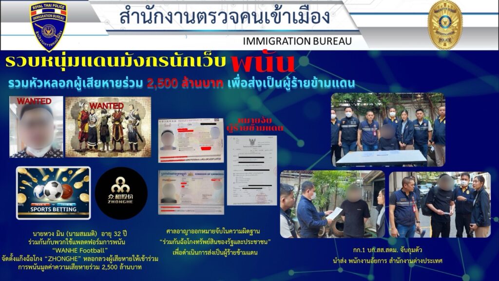 [ 1 ] รวบหนุ่มแดนมังกรนักเว็บพนันรวมหัวหลอกผู้เสียหายร่วม 2,500 ล้านบาท เพื่อส่งเป็นผู้ร้ายข้ามแดน