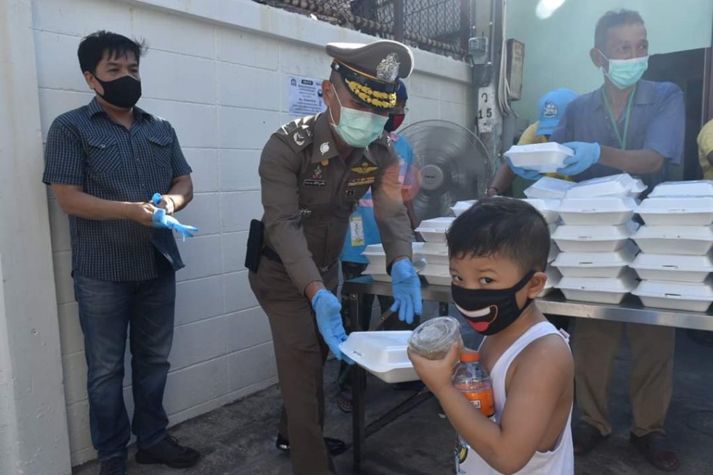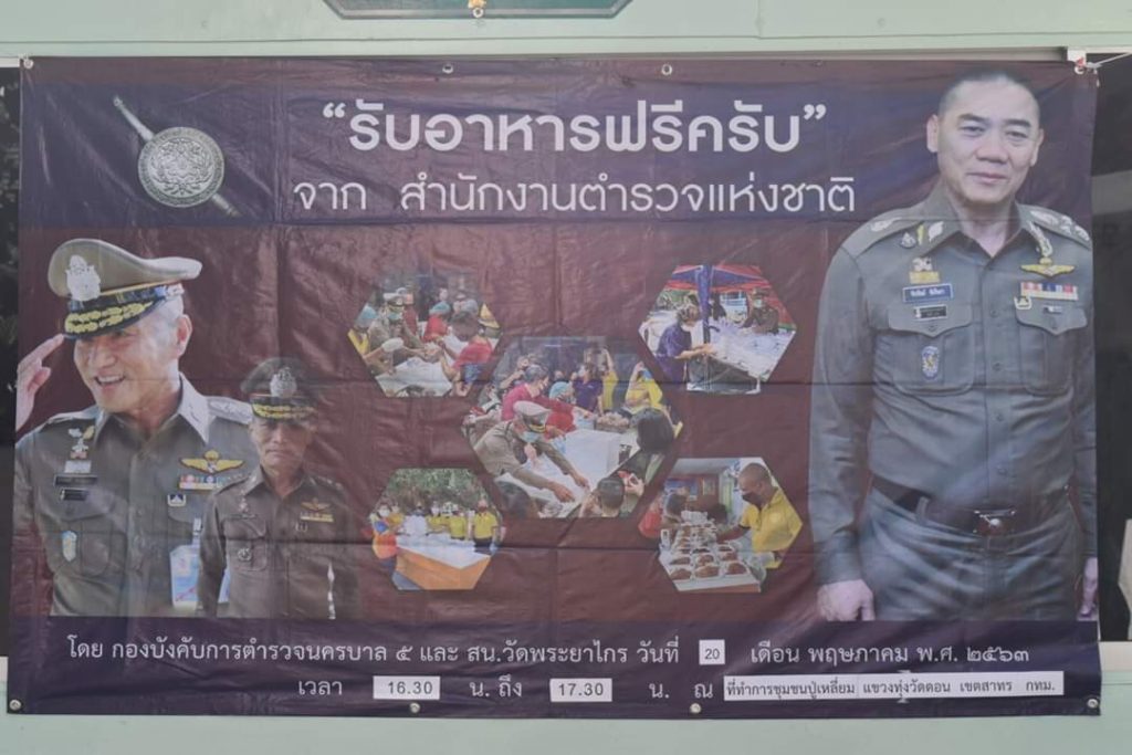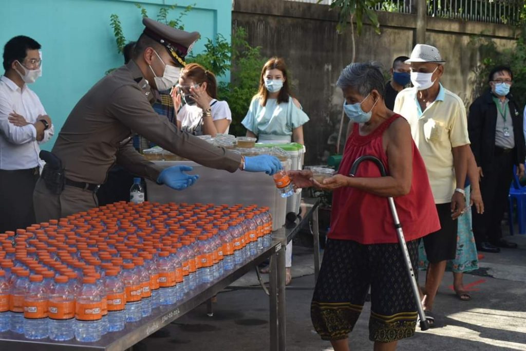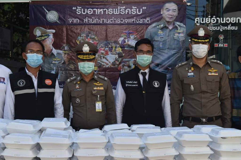 เข้าร่วมในการจัดโครงการ “รับอาหารฟรีครับ” ตามนโยบายของ พล.ต.อ.จักรทิพย์ ชัยจินดา ผบ.ตร. เพื่อบรรเทาความเดือดร้อนให้กับประชาชนที่ได้รับผลกระทบจากการแพร่ระบาดของเชื้อไวรัสโควิด-19