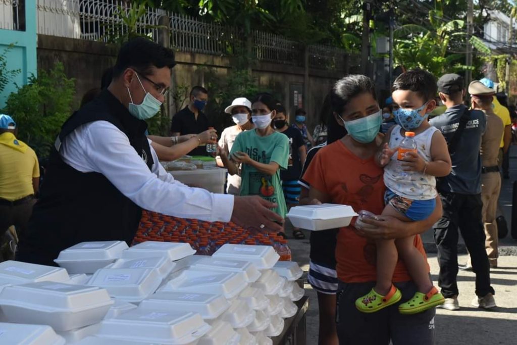 โดยในการแจกอาหารและน้ำดื่ม ได้ประชาสัมพันธ์ให้ปฏิบัติตามหลัก “Social Distancing” อย่างเคร่งครัด, การให้สวมหน้ากากอนามัยตลอดเวลา, การตั้งจุดคัดกรอง เพื่อตรวจวัดอุณหภูมิร่างกาย และ บริการเจลล้างมือ ตามมาตรการป้องกันและเฝ้าระวังการติดเชื้อไวรัส โควิด-19