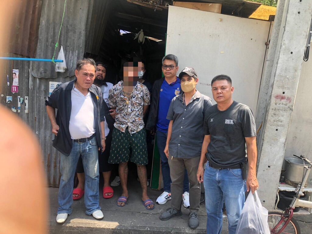 จนกระทั่งได้รับแจ้งจากสายลับ (ขอปกปิดนาม) ทราบว่านายพัฒนะหรือเคน (สงวนนามสกุล) ผู้ใช้อาวุธมีดแทงผู้เสียชีวิตได้หลบหนีมาพักอาศัยอยู่ที่บ้านเช่าไม่ทราบเลขที่ ซอยตรอกครุฑ แขวงศาลเจ้าพ่อเสือ เขตพระนคร กรุงเทพมหานคร จึงได้เดินทางไปจับกุมเมื่อเดินทางไปถึงพบตัวนายพัฒนะหรือเคนฯ นอนอยู่ จึงได้แสดงตัวเป็นเจ้าหน้าที่ตำรวจพร้อมทำการจับกุมตัว สอบถามนายพัฒนะหรือเคนฯ รับว่าเป็นผู้ก่อเหตุใช้อาวุธมีดพับสแตนเลสแทงนายนายสมปอง โสภารุณ จริงที่บริเวณหน้าอกข้างซ้ายใต้ราวนม จำนวน 1 ครั้ง หลังก่อเหตุตนได้ซ้อนรถจักรยานยนต์ของนายนิธพัชญ์หรือเล็ก รัตนคช พากันหลบหนีที่บ้านเช่าหลังดังกล่าว จากนั้นได้แยกย้ายกับนายนิธพัชญ์หรือเล็กฯ โดยไม่ทราบว่านายนิธพัชญ์หรือเล็กฯ พักอยู่ที่ใด จากนั้นเจ้าหน้าที่ตำรวจชุดจับกุมจึงได้ทำการตรวจยึดของกลางรายการที่ 1 ถึงของกลางรายการที่ 5 ไว้เป็นของกลาง