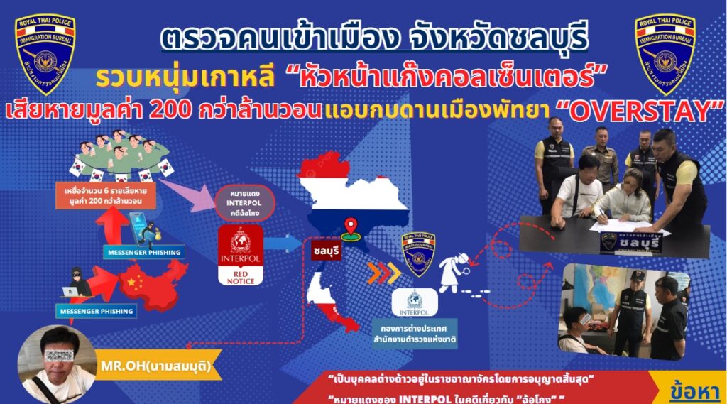 [ 1 ] รวบหนุ่มเกาหลี “หัวหน้าแก๊งคอลเซ็นเตอร์” เสียหายมูลค่ากว่า 200 ล้านวอน แอบกบดานเมืองพัทยา “OVERSTAY”