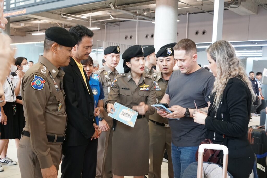 โดยในวันนี้ นายจาตุรนต์ ภักดีวานิช อธิบดีกรมการท่องเที่ยว ,พล.ต.ต.พงษ์สยาม มีขันทอง รอง ผบช.ทท. ,พล.ต.ต.ม.ล.สันธิกร วรวรรณ ผบก.ทท.1 ,นายกิตติพงส์ ประพัฒน์ทอง ผู้อำนวยการฝ่ายโฆษณาประชาสัมพันธ์ ททท. ,พ.ต.อ.รุ่งโรจน์ นิลมงคล รอง ผบก.ตม.2 และพ.ต.อ.พงษ์พิเชษฐ์ นิลจันทร์ ผกก.3 บก.ทท.1 พร้อมด้วย ข้าราชการ ตร.ในสังกัด กก.3 บก.ทท.1 และ บก.ตม.2 ,เจ้าหน้าที่ TAC ประจำสนามบินสุวรรณภูมิ ,อาสาสมัครตำรวจท่องเที่ยว