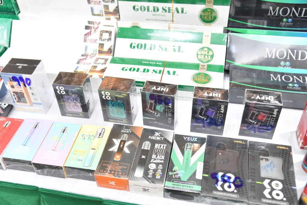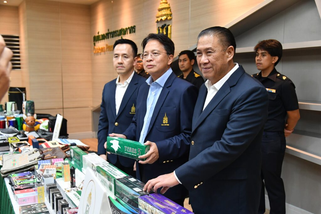 ตรวจยึดได้ 275 คดี ปริมาณ 4,831 กิโลกรัม มูลค่า 6,736,638 บาท - บุหรี่ไฟฟ้า อุปกรณ์บุหรี่ไฟฟ้า น้ำยาบุหรี่ไฟฟ้า /บารากู่ บารากู่ไฟฟ้า ตรวจยึดได้ 169 คดี จำนวน 262,693 ชิ้น มูลค่า 33,224,177 บาท