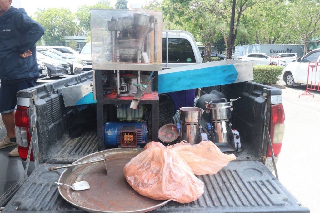 - เครื่องอัดเม็ดยา จำนวน 1 เครื่อง ซุกซ่อนอยู่ภายในห้องชั้น 3 ของบ้านเลขที่ 93/10