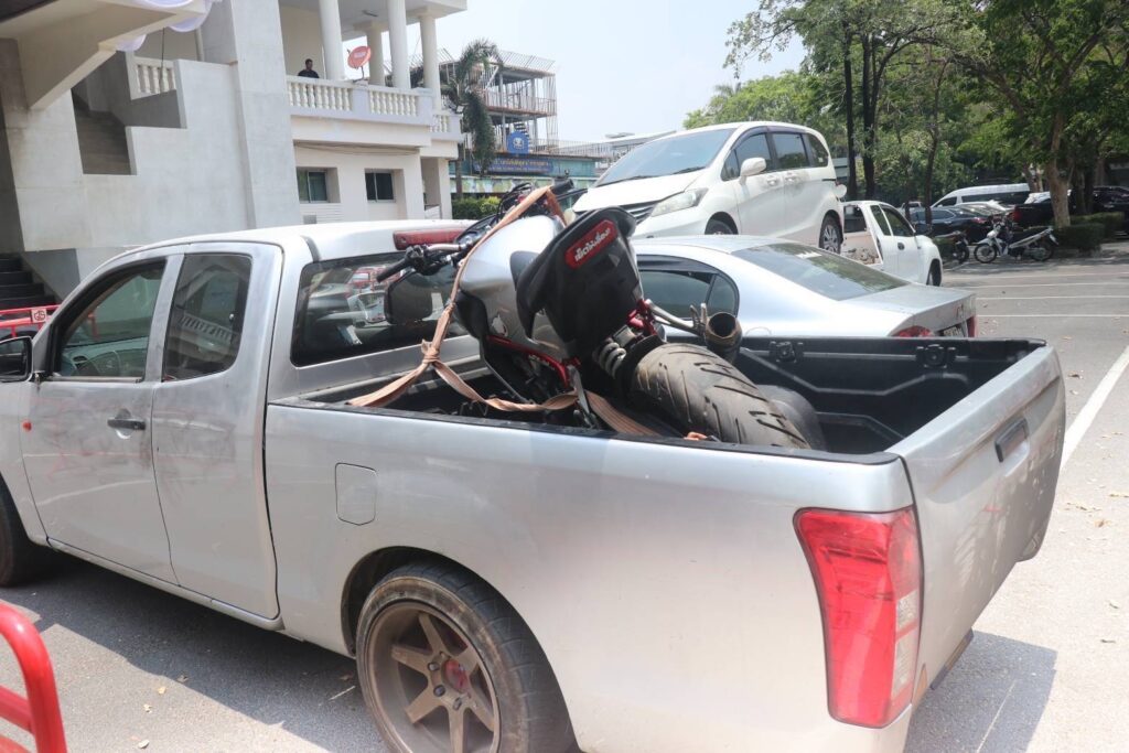 - รถยนต์กระบะแบบแคป ยี่ห้ออีซูซุ สีเทา ติดแผ่นป้ายทะเบียน กจ 1025 จำนวน 1 คัน