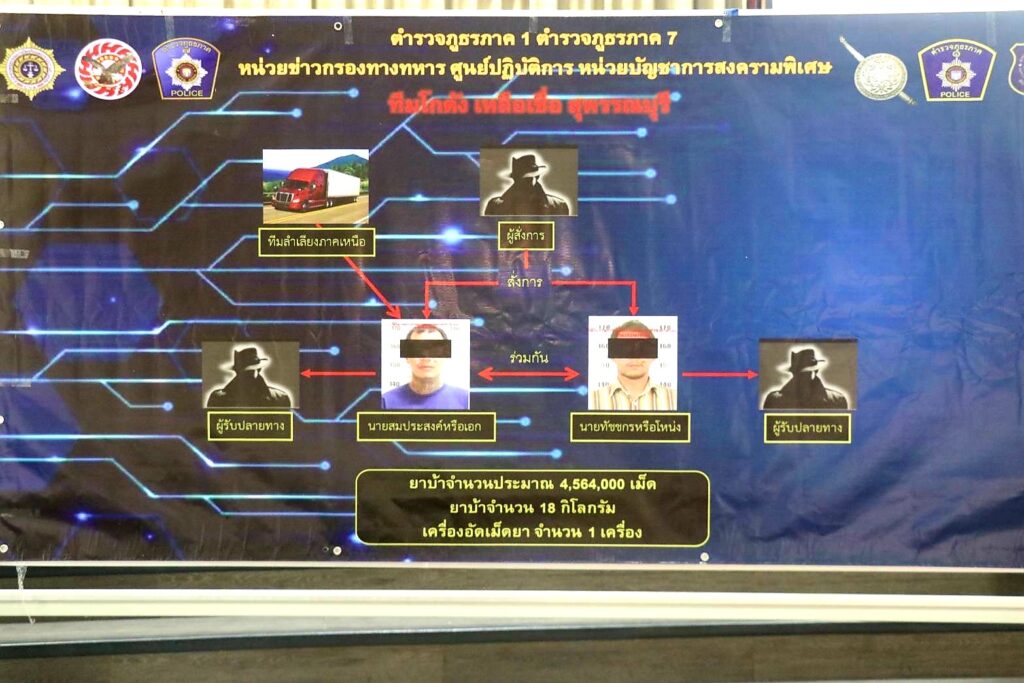 ตำรวจภูธรภาค ๑ จับกุมเครือข่ายยาเสพติด ทีมโกดัง เหลือเชื่อ สุพรรณบุรี ยึดยาบ้า 4,564,000 เม็ด และยาบ้า (ผงรออัดเม็ด) หนักประมาณ 18 กิโลกรัม มูลค่ารวมกว่า 76,500,000 บาท