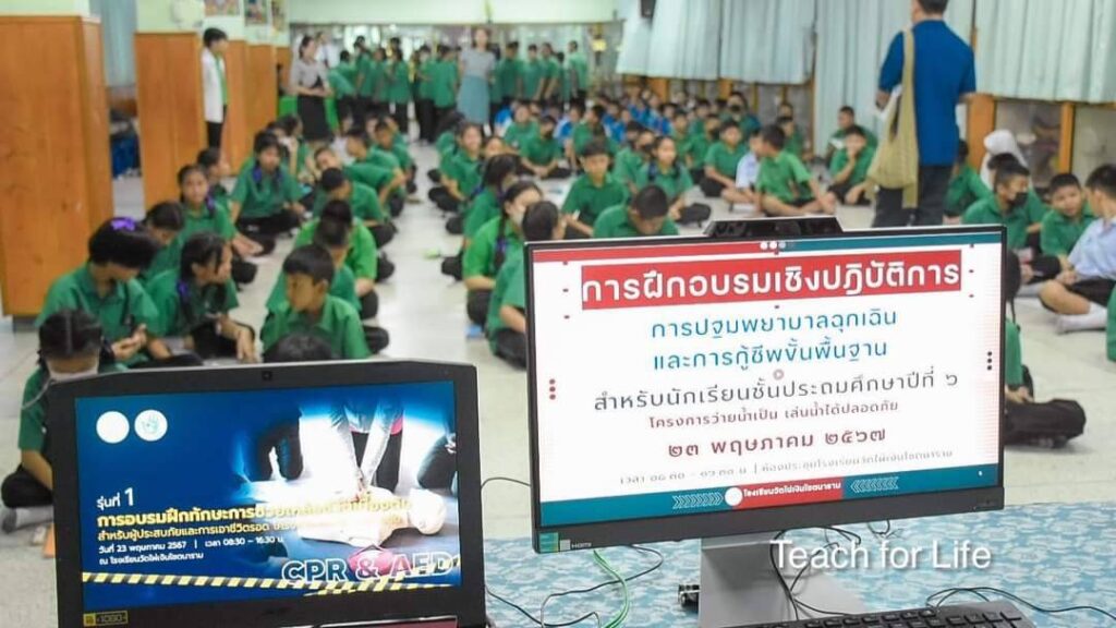 สมาคมทีชฟอร์ไลฟ์จึงได้ออกแบบวิธีการฝึกอบรมที่ให้ความสำคัญกับแรงบันดาลใจและการฝึกปฏิบัติอย่างเข้มข้นและถูกต้อง ตามมาตรฐานสากล พร้อมระดมวิทยากรผู้เชี่ยวชาญ จากภาคีเครือข่าย 22 แห่ง จากทุกภูมิภาคทั่วประเทศ ส่งบุคคลากร ร่วมเป็นวิทยากรในการอบรมเชิงปฎิบัติการ มากกว่า 120 ท่าน และระดมหุ่นฝึก CPR กว่า 500 ตัว โดยมีจุดมุ่งหมายเดียวกัน เพื่อให้เด็กกรุงเทพมหานครทำ CPR เป็น ภายใต้ความเชื่อที่ว่า #เพราะการช่วยเหลือชีวิตเป็นหน้าที่ของทุกคน