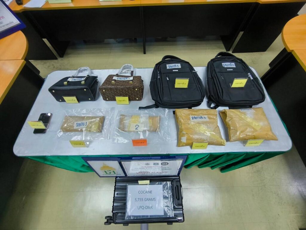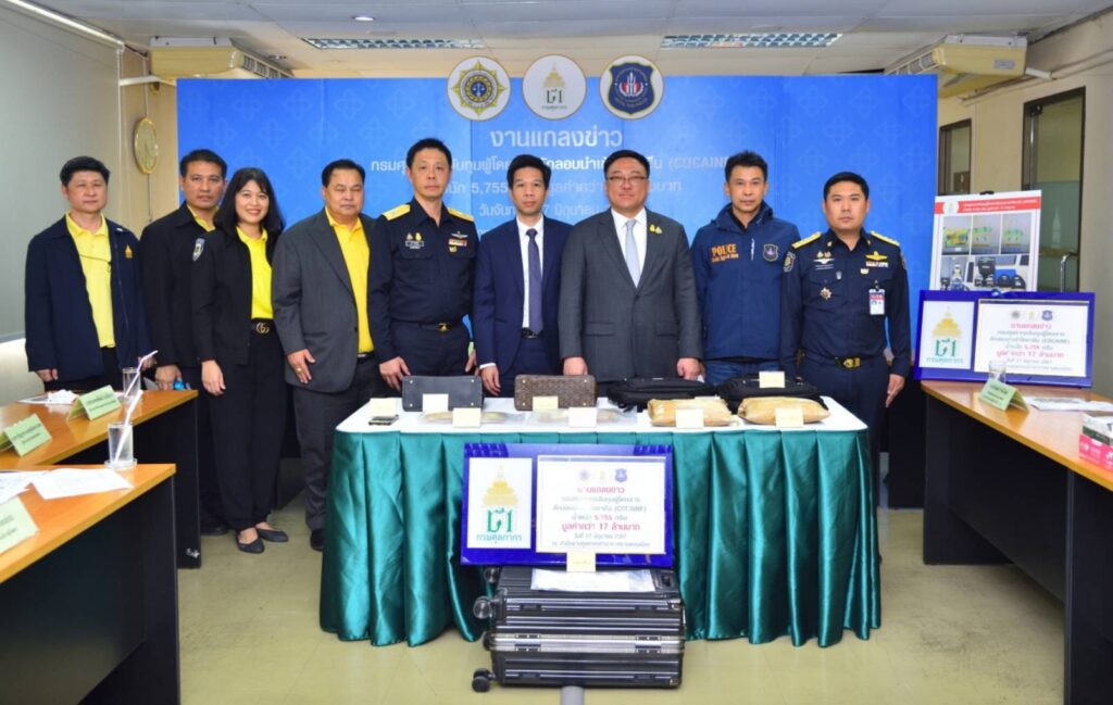 กรมศุลกากรจับกุมผู้โดยสารลักลอบนำเข้าโคคาอีน (COCAINE) น้ำหนักรวมหีบห่อประมาณ 5,755 กรัม มูลค่าประมาณ 17 ล้านบาท ณ สำนักงานศุลกากรท่าอากาศยานดอนเมือง กรุงเทพ