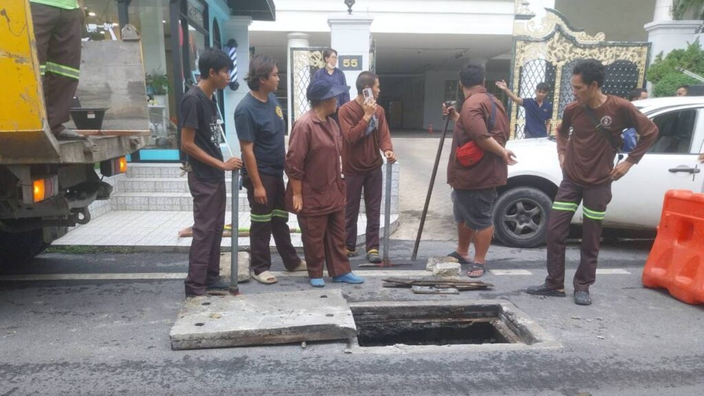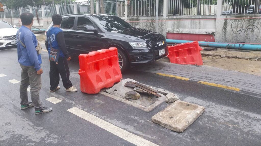 ฝาท่อแตกหักทรุดตัวกลางซอยปรีดีพนมยงค์ 31