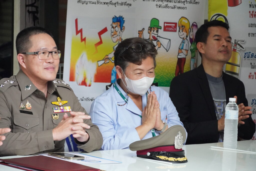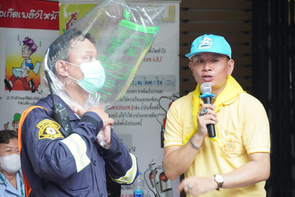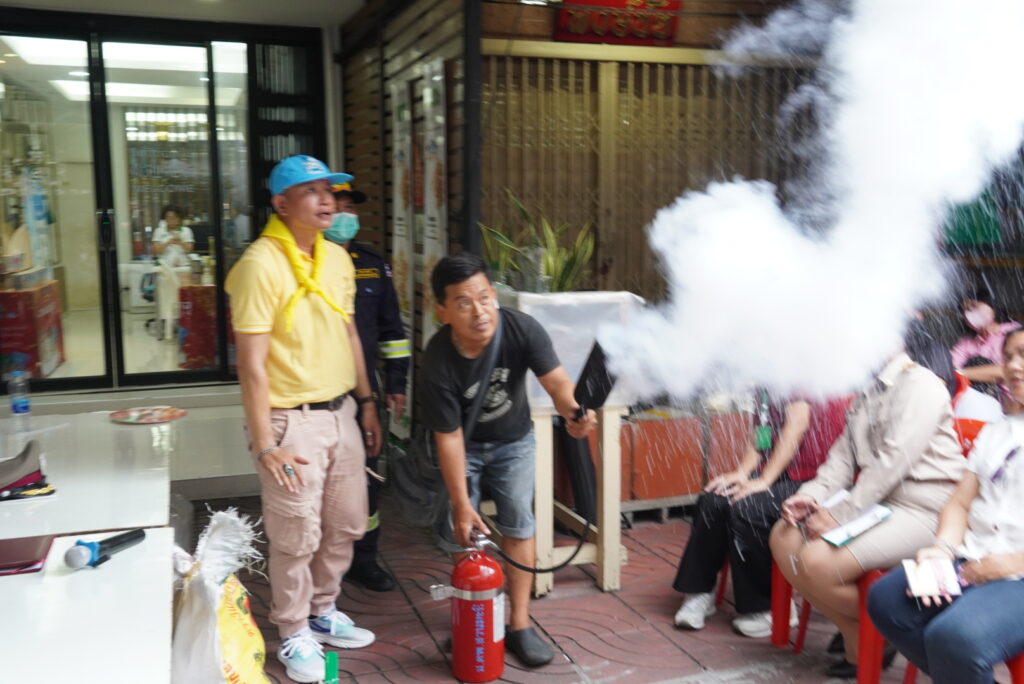 หลังพิธีปิดได้เสริมทักษะการป้องกันอัคคีภัยในชุมชน และมอบข้าวสารให้กับผู้เข้าร่วมกิจกรรมกรรมชุมชนบำบัด