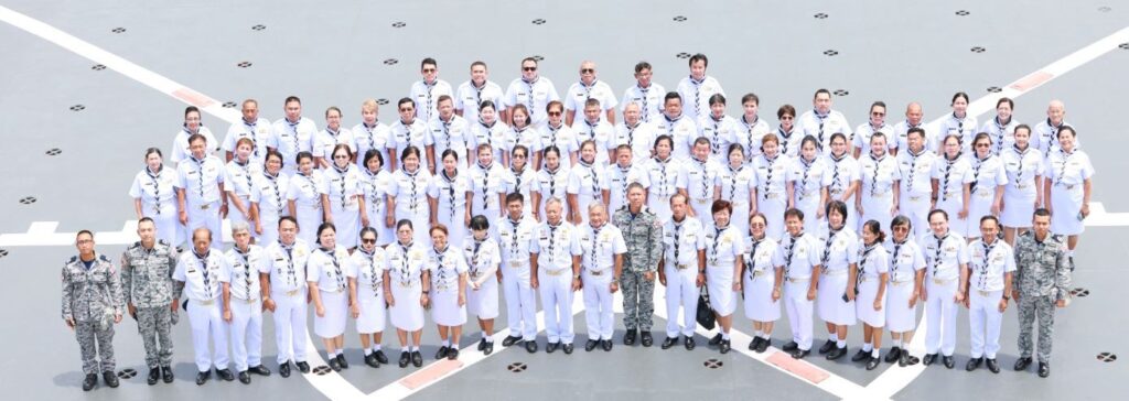 คณะสโมสรลูกเสือนาวี โดยพลเรือเอก ทักษิณ ฤกษ์สังเกต นายกสมาคมลูกเสือนาวี จัดการฝึกอบรม ผู้กำกับลูกเสือสามัญ ขั้นความรู้เบื้องต้นและฝึกภาคปฏิบัติทางทะเล ให้กับสมาชิกสโมสรลูกเสือนาวี รุ่นที่ 33 (ศรีอาภานาวี33) ระหว่างวันที่20-22 กันยายน 2567โดยมีพลเรือเอก ศุภพงษ์ ศิริสนธิ เป็นผู้อำนวยการฝึกอบรม ณ ค่ายลูกเสือ ชั่วคราว หน่วยบัญชาการต่อสู้อากาศยานและรักษาฝั่ง ทั้งนี้ นาวาเอก ศิรัส ลิ้มเจริญ รองผู้บัญชาการหน่วยบัญชาการต่อสู้อากาศยานและรักษาฝั่ง เป็นผู้แทน พลเรือตรี ศุภสิทธิ์ บูรณะโอสถ ผู้บัญชาการหน่วยบัญชาการต่อสู้อากาศยานและรักษาฝั่ง ให้การต้อนรับและรับรอง คณะสโมสรลูกเสือนาวี และบรรยายสรุปเกี่ยวกับศูนย์อนุรักษ์พันธุ์เต่าทะเล กองทัพเรือ และเข้าเยี่ยมชมเรือหลวงอ่างทอง โดยมี นาวาโท จักรพันธ์ จันดาห์ ผู้บังคับการเรือหลวงอ่างทองให้การต้อนรับและรับรอง และบรรยายสรุปความรู้เกี่ยวกับประวัติและหน้าที่ของเรือหลวงอ่างทอง โดยเรือหลวงอ่างทองมีขนาดใหญ่เป็น “ลำดับที่ 3″ รองจาก เรือหลวงจักรีนฤเบศร และ เรือหลวงสิมิลัน มีขีดความสามารถในการเคลื่อนกำลังจากทะเลสู่ฝั่ง (โจมตีโฉบฉวยสะเทินน้ำสะเทินบก)