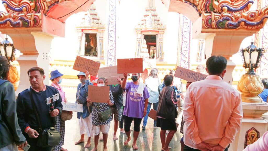 ชาวบ้านนับร้อยคนรวมตัวประท้วงการแต่งตั้งเจ้าอาวาสวัดหลวงพ่อโอภาสี