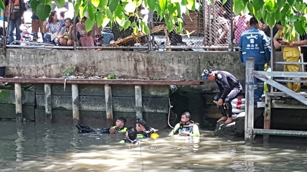 ที่เกิดเหตุเป็นศาลเจ้า พุทธแสงธรรมสมาคม ที่ท่าน้ำ พบคนมุงดูจำนวนมาก แต่ยังไม่พบผู้สูญหาย จึงใช้ชุดนักประดาลงไปงมหาสักพัก ก็พบร่างผู้สูญหาย ห่างจากจุดเกิดเหตุประมาณ 20-30 เมตรบริเวณกลางลำคลอง เป็นชาย 1 ราย สวมใส่เสื้อยืดสีดำ กางเกงสีน้ำเงิน ทราบชื่อต่อมาชื่อ นายวีระกุล สารสี อายุ 47 ปี เป็นคนจังหวัดพะเยา