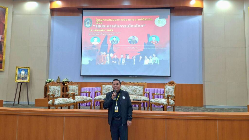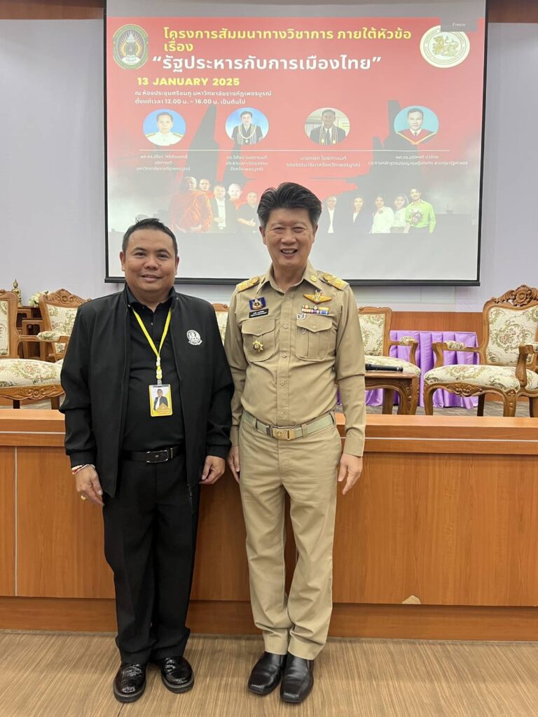นายศรพงศ์ศักดิ์ สุวรรณปรุง นักศึกษาปริญญาเอกหลักสูตรปรัชญาดุษฎีบัณฑิตสาขาวิชารัฐศาสตร์ รุ่น ที่1มหาวิทยาลัยราชภัฎเพชรบูรณ์ ร่วมจัดสัมมนาวิชาการ โดยมีนายกกชัย ฉายรัศมีกุล รองผู้ว่าราชการจังหวัดเพชรบูรณ์ เป็นประธานเปิดงาน ปาฐกถาพิเศษโครงการสัมมนาทางวิชาการโดย ผศ.ดร. ปรีชา ศรีเรืองฤทธิ์ อธิการบดีมหาวิทยาลัยราชภัฎเพชรบูรณ์และ ได้รับเกียรติจาก ดร. วิศัลย์ โฆษิตานนท์ ประธานสภาวัฒนธรรมจังหวัดเพชรบูรณ์ นายกษิต โฆษิตานนท์ รองธรรมาธิบาลจังหวัดเพชรบูรณ์ พร้อมนายชัยณรงค์ คำปัน นักสื่อสารมวลชนชำนาญการร่วมเป็นพิธีกรร่วมเสวนา ผศ.ดร. วุฒิพงศ์ บัวช้อย ประธานหลักสูตรปรัชญาดุษฎีบัณฑิต สาขาวิชารัฐศาสตร์ มหาวิทยาลัยราชภัฎเพชรบูรณ์ พันเอก ดร.ประดิษฐ์ ธิติศรัณย์ ดร. ดวงใจ ปินตามูล และนักศึกษาปริญญาเอก ปริญญาโท และปริญญาตรี เข้าร่วมโครงการสัมมนาในครั้งนี้ ภายใต้หัวข้อเรื่อง“ รัฐประหารกับการเมืองเมืองไทย” วัตถุประสงค์