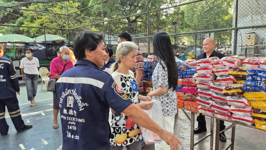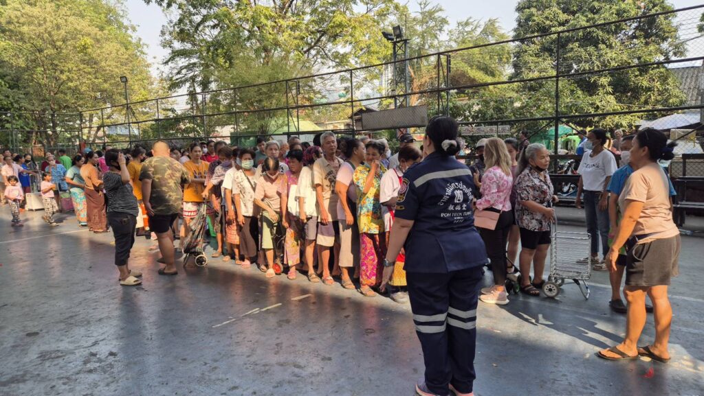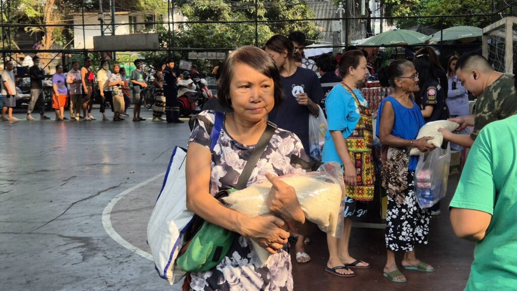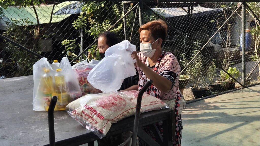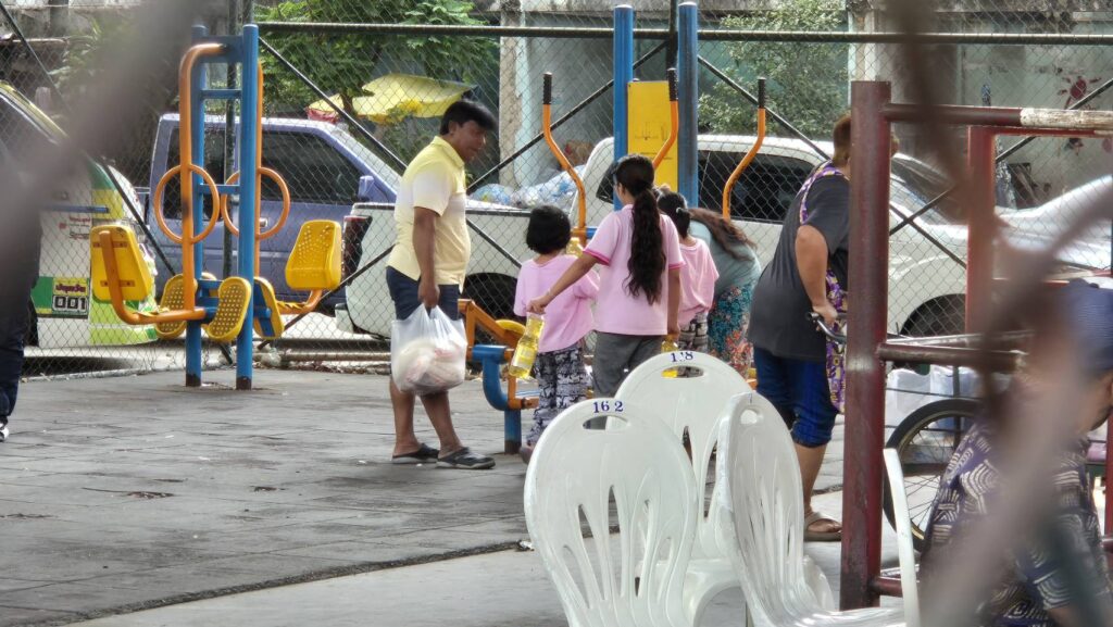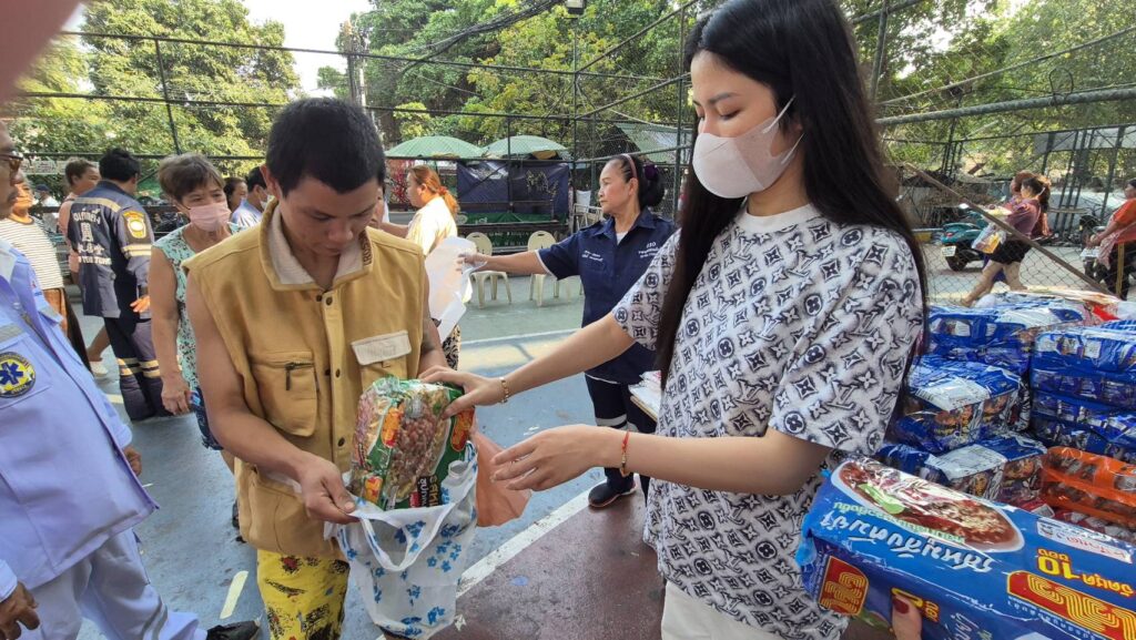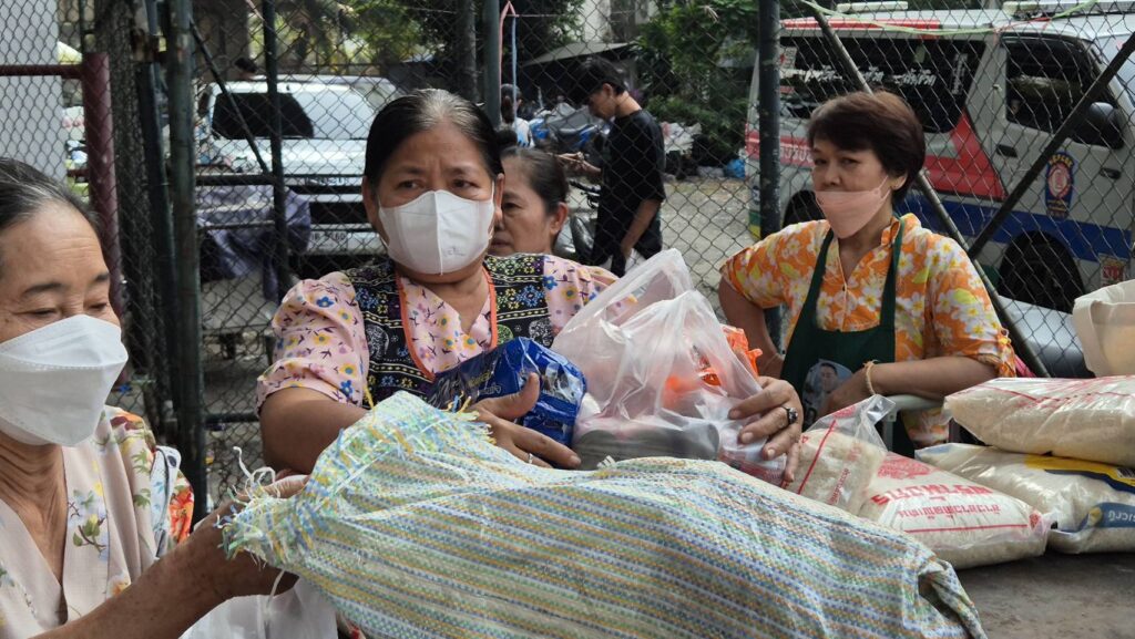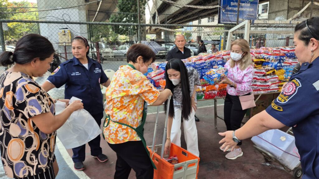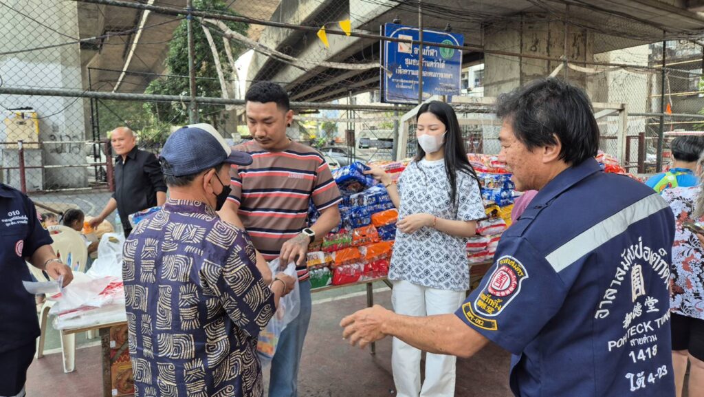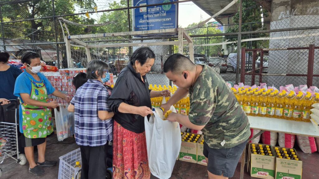 ผู้ใหญ่ใจบุญพร้อมอาสาเข้าแจกของบริโภคชุนชนบ้านครัวใต้ ใต้สะพานทางด่วนอุรุพงษ์