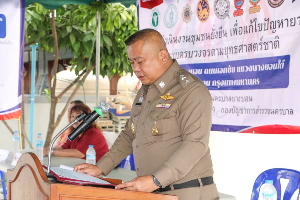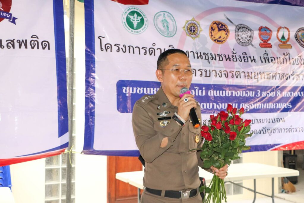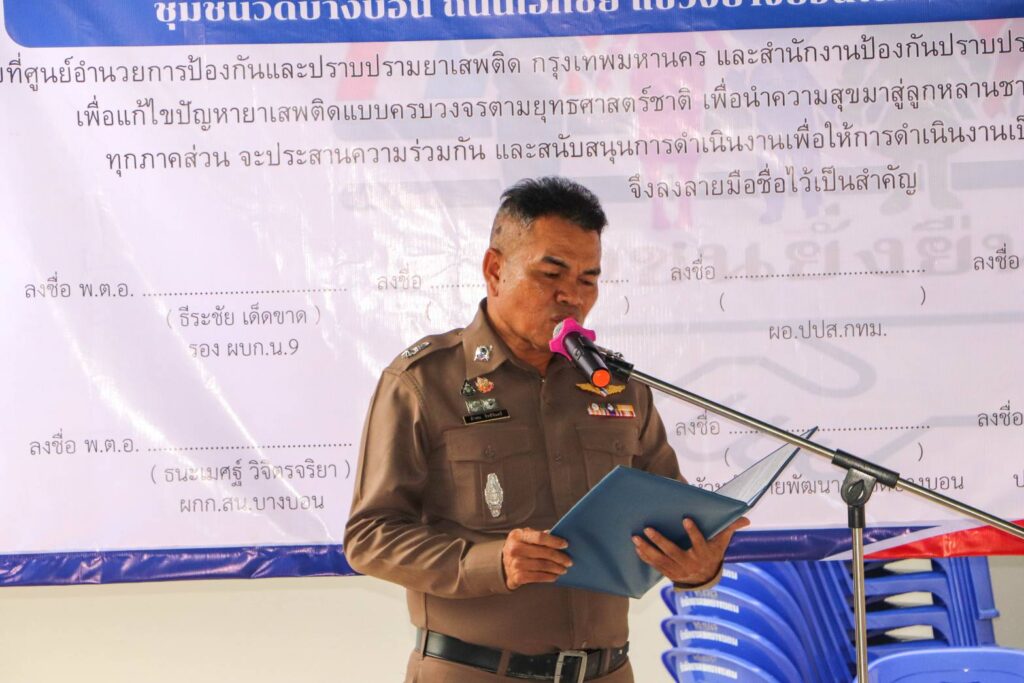 พ.ต.อ.ธีระชัย เด็ดขาด รอง ผบก.น.9 เป็นประธานเปิดโครงการดำเนินงานชุมชนยั่งยืน เพื่อแก้ไขปัญหายาเสพติดแบบครบวงจรตามยุทธศาสตร์ชาติ สน.บางบอน