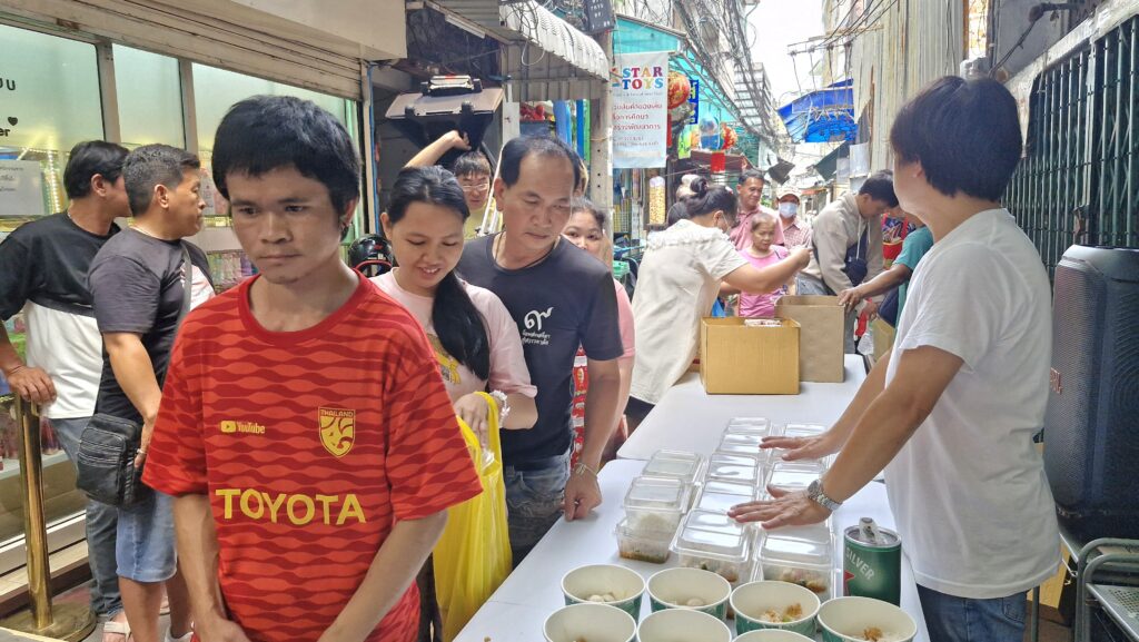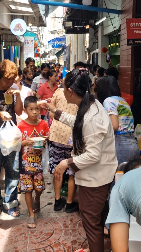 ชุมชนอิสรานุภาพ (ตรอกโรงโคม ) เขต.สัมพันธวงค์ กทม. ร่วมกับร้านค้า สำเพ็ง แจกข้าวกล่อง 300 กล่อง ก๋วยเตี๋ยว 200 ชาม ขนมปัง น้ําเก๊กฮวย ยาคู่ลท์ ถวายพระราชกุศล เนื่องในวันเฉลิมพระชนมพรรษา สมเด็จพระนางเจ้าฯ พระบรมราชินี