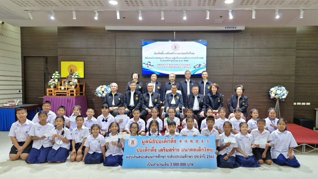 “มูลนิธิป่อเต็กตึ๊ง เสริมสร้าง อนาคตเด็กไทย” มอบทุนการศึกษาระดับชั้นประถม ประจำปี 2568 แก่เยาวชนที่ประพฤติดีแต่ขาดแคลนทุนทรัพย์ ณ มูลนิธิป่อเต็กตึ๊ง พลับพลาไชย กรุงเทพฯ